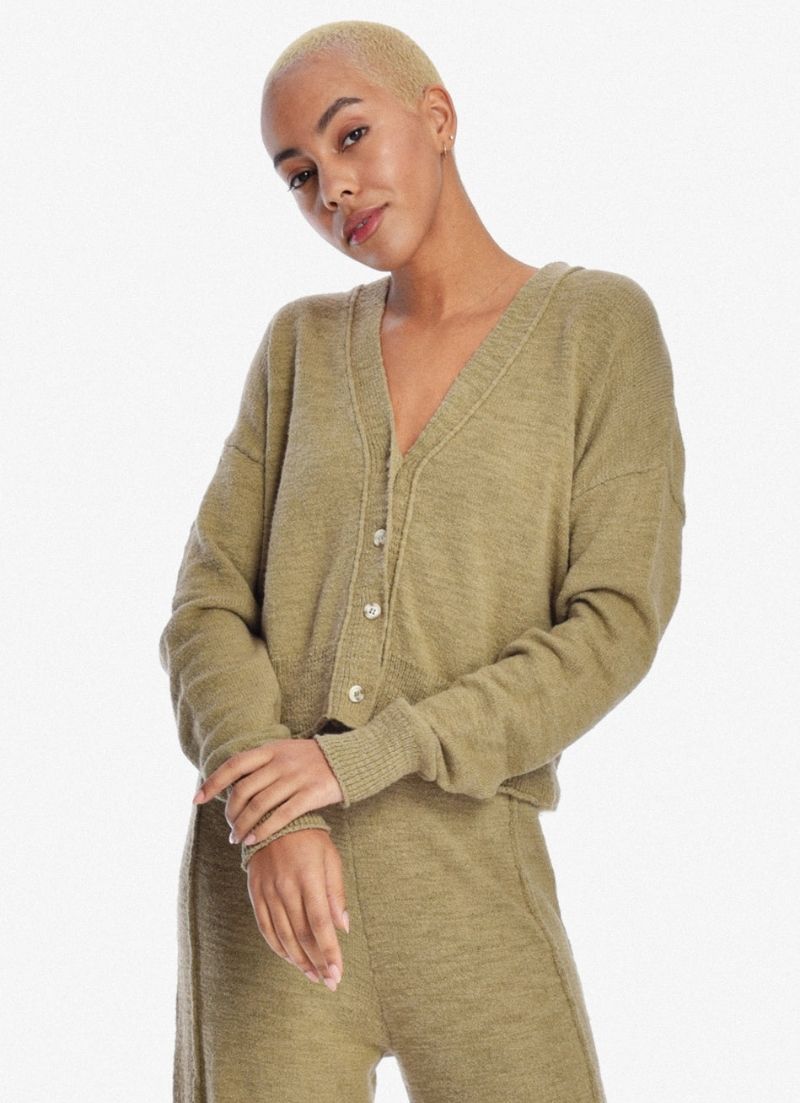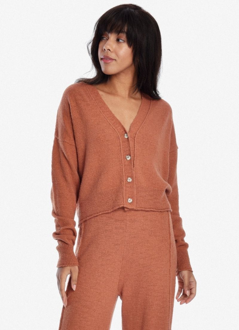 Wear this cardigan alone or layer it. Front button closure, V-neck style, full-length sleeves.