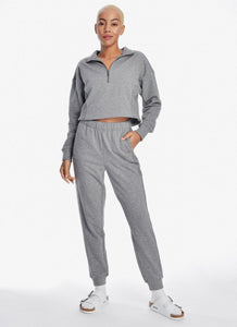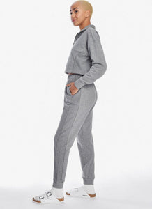 Rock and roll out of bed. These are relaxed, hi rise joggers with an elastic waist and slash pockets.