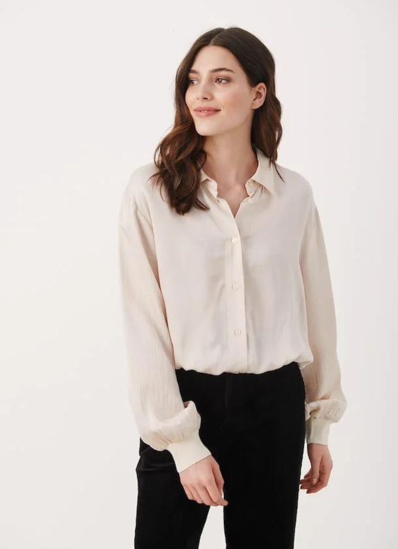 Renea is a long sleeve short shirt with wrist cuffs, button up front and an elasticated waist.