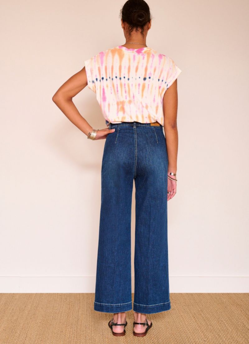 Fall in love with these flare jeans featuring wide pleats along the leg to create a slim silhouette. Their versatility will make them a must-have throughout the seasons.