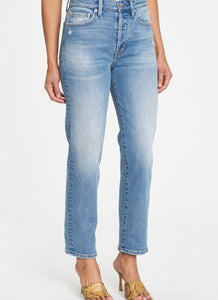 The Charlie is a traditional high rise straight leg with a button fly. The Spruce wash is our comfort stretch denim that features a clean style with no distressing. The straight leg of dreams!