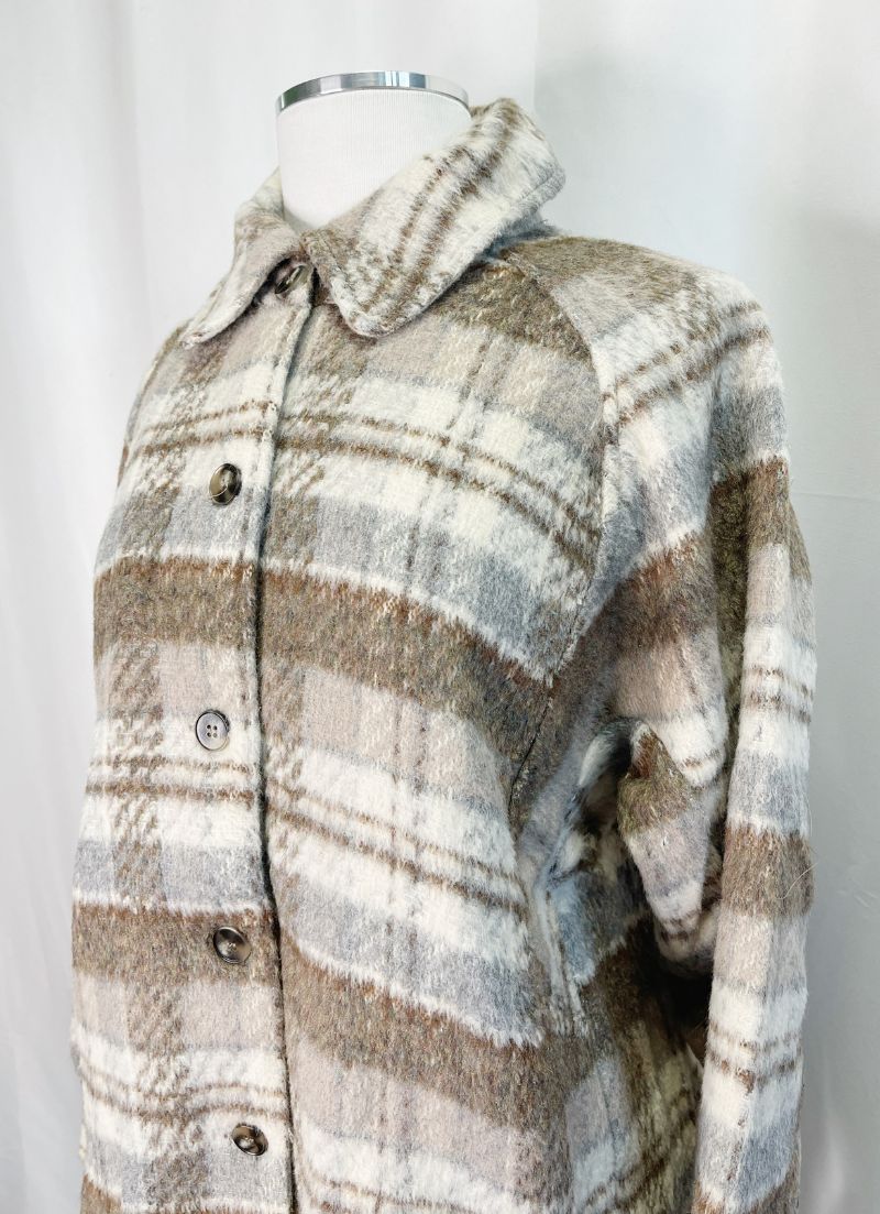Mad about plaid? You'll love this classic shacket from Mystree. Featuring a rounded collar and button up fastening.