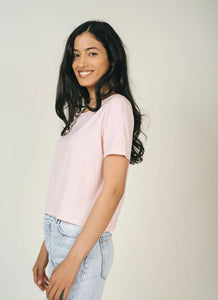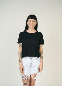 This sweet little number features a familiar crew neckline with an updated body for a more cropped, boxy fit that is both cute and stylish.