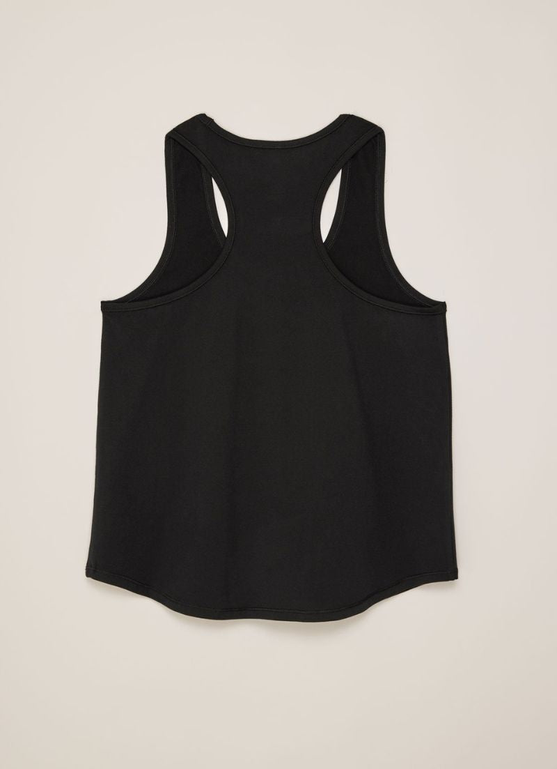 Nice, and easy. A relaxed workout tank featuring a hip length. Fun fact, it's recyclable when you’re finished with it (a long, long time from now).