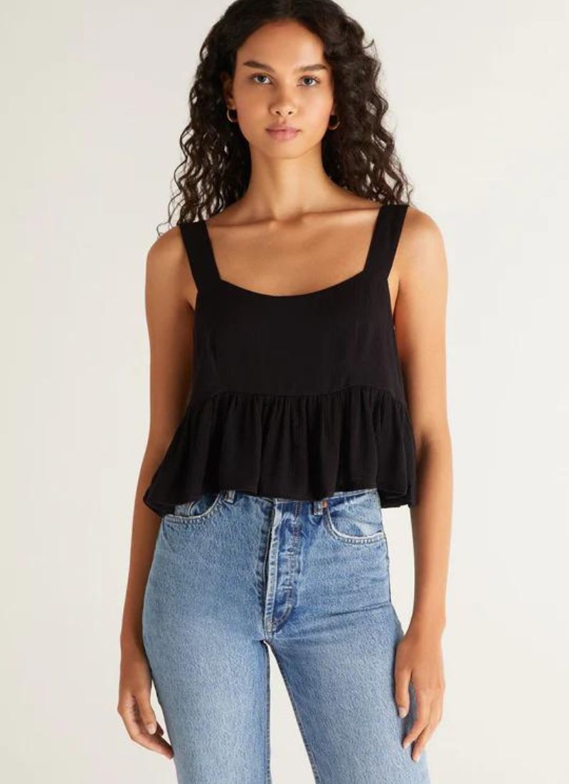 Made using Z Supply's Crinkle Rayon fabric, this cropped and cute statement piece features adjustable straps with buttons in the back, and ruffles below the bust.