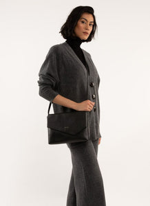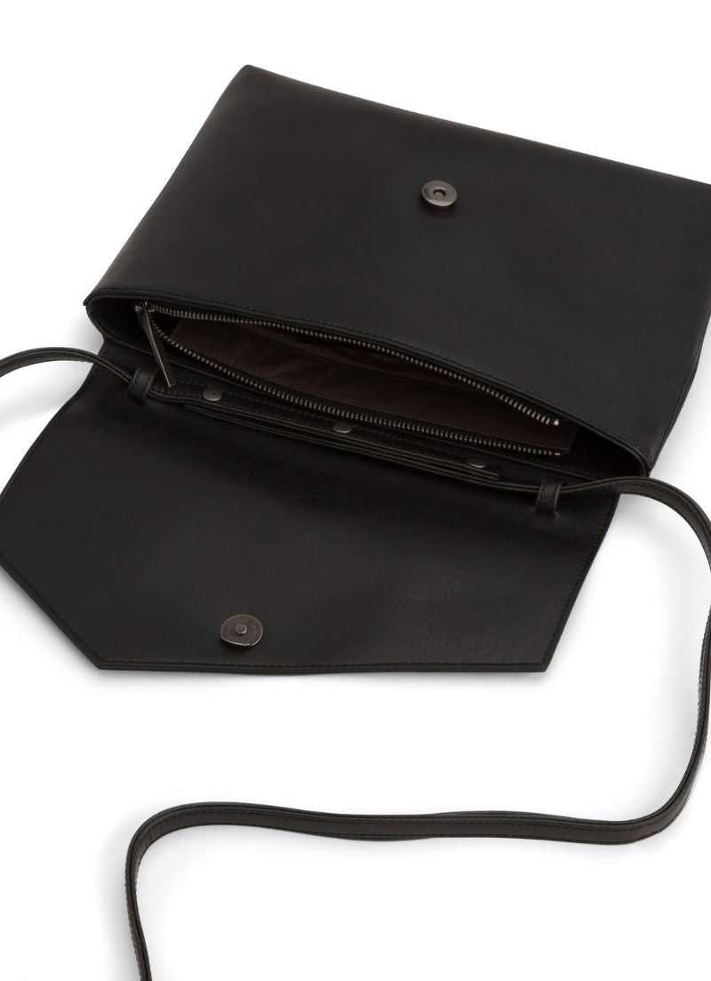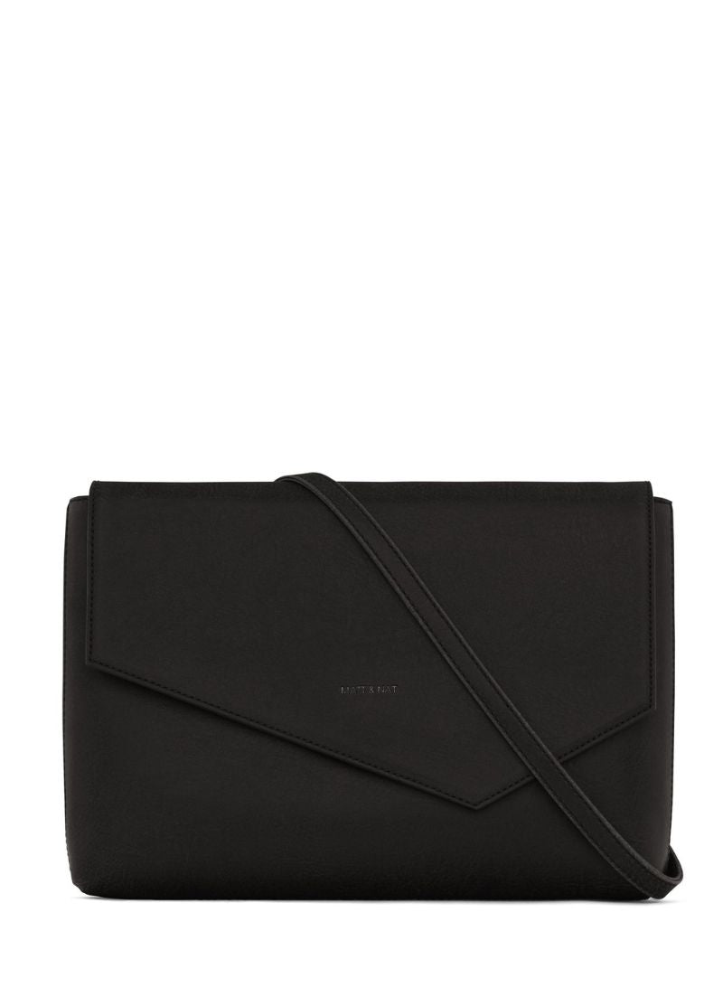 The Riya Clutch features an asymmetrical flap and main compartment zipper closure for security. Comes with a shoulder strap that is removable and adjustable with snaps.