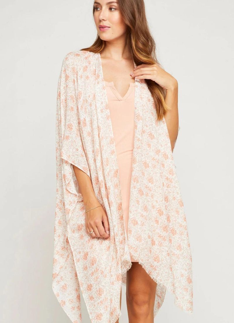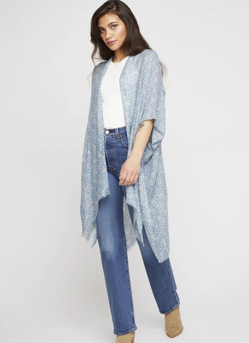 The Rosabelle cover up features a print designed in house at Gentle Fawn. Wear it as a lightweight layering piece all season long!