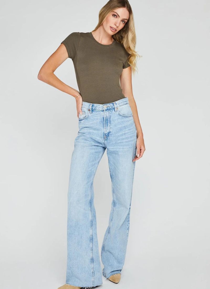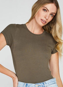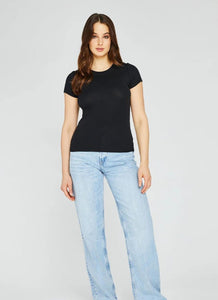 The Clara is a fitted crewneck tee made of a stretchy ribbed fabric. It’s an essential layering piece that can be easily dressed up or down.