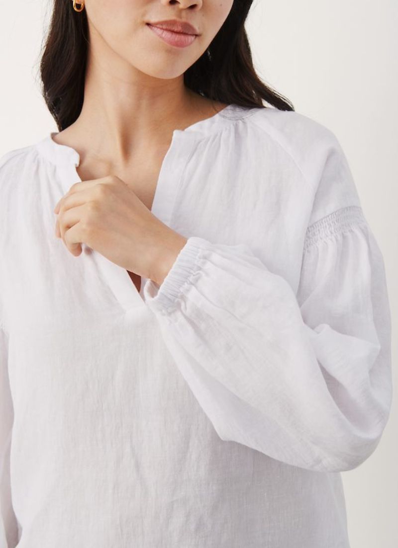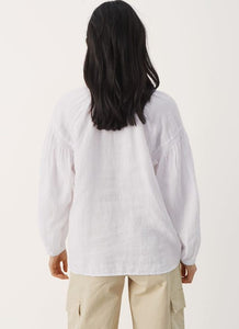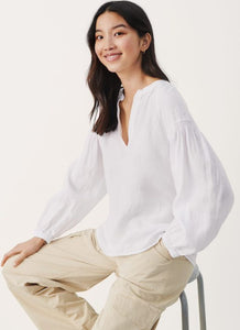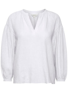 A relaxed fit long sleeve blouse with a v-neck cut out. Pair with a linen pant or your favourite jeans.