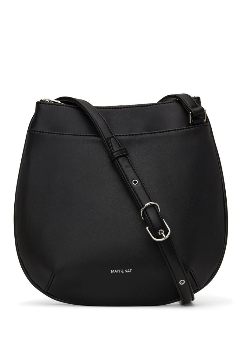 A crossbody bag with an adjustable strap, top zipper closure and a front pocket with magnetic snap.