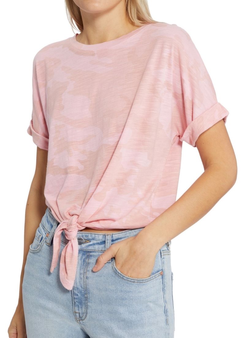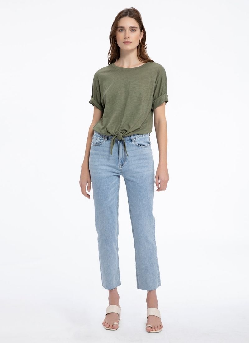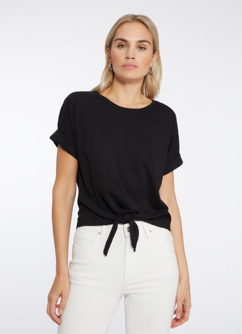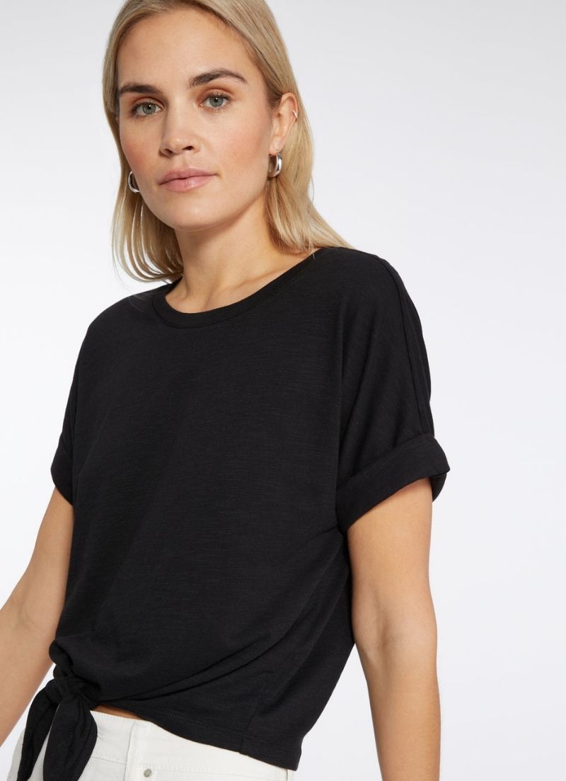 A knotted tie and rolled cuffs add understated casual chic to this essential slubbed cotton crew neck t-shirt with dropped shoulders.