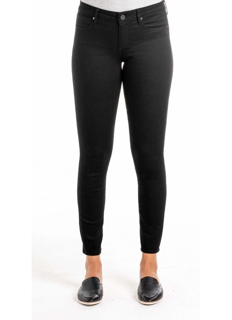 The Sarah Jean is a classic black skinny jean featuring a mid rise. It'll be your new go to jean that you can pair with any sweater or blouse!