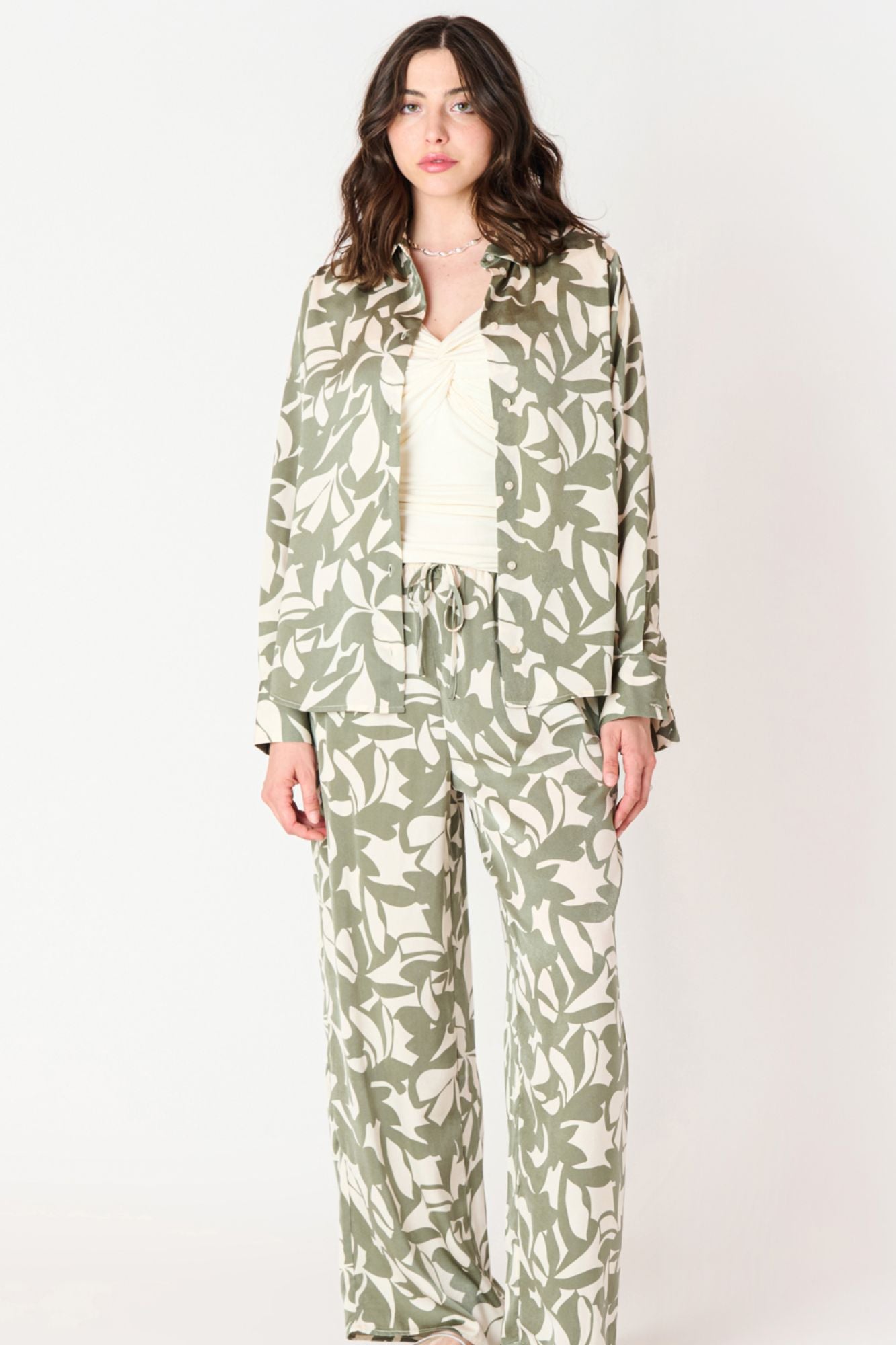 Expertly crafted, this Satin Blouse features a flowy and lightweight design with long sleeves perfect for any occasion. The elegant Cream and Sage Floral adds a touch of sophistication, while the button up collar allows for a versatile look. Experience comfort and style with this must-have piece.