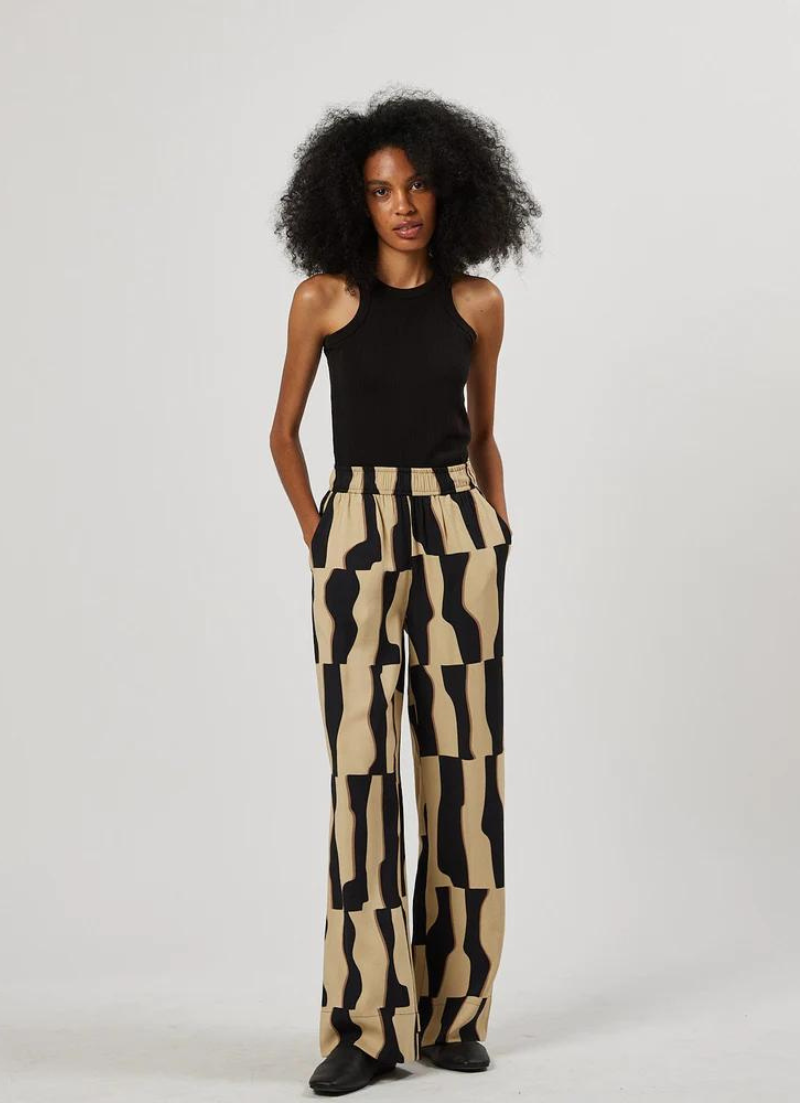 Satti is a pair of casual pants crafted from 100%viscose for a soft quality. The pants have a relaxed fit andfeature an abstract pattern with a wide elastic waistband. The model is 180 cm tall and wears a size 36.