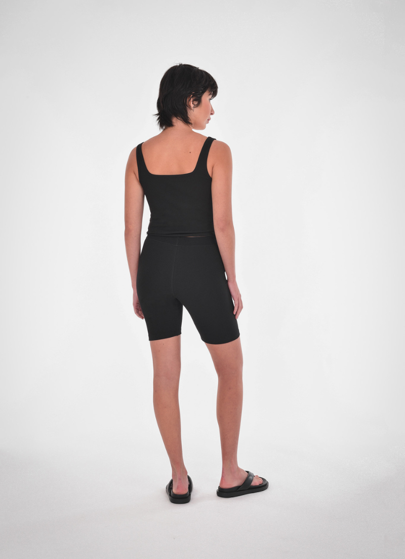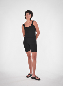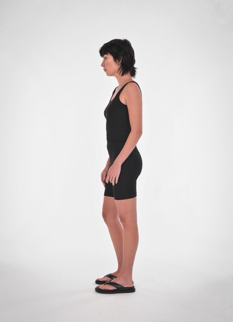Designed with a flattering high-waist and mid-thigh cut that stays in place so you can move freely. Cool and breathable Pima stretch-cotton rib for warm-weather comfort.