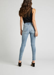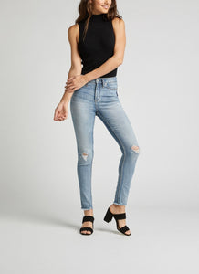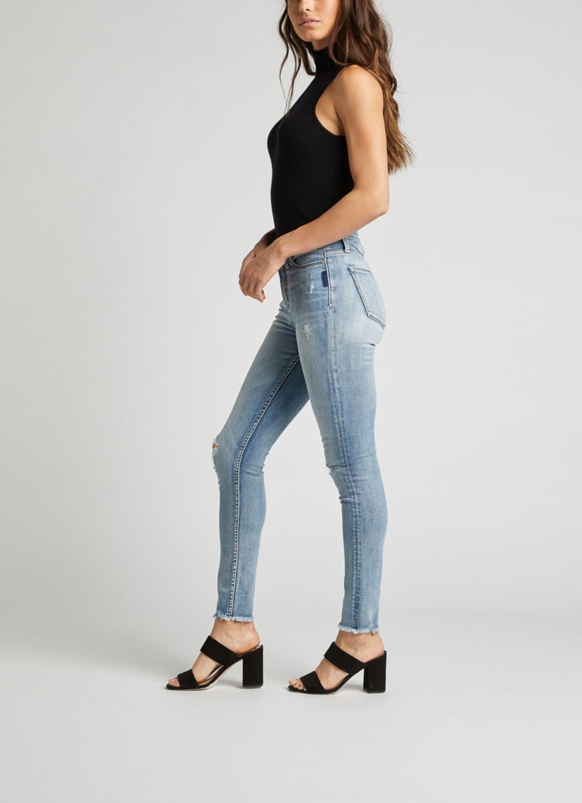 I wish I was a little bit taller...how? These leg-elongating high rise jeans are a good start! It's designed with a slim fit through the waist, hip and thigh and has a contoured waistband to flatter your natural shape. Features an authentic distressing for a worn-in look and finished with frayed hems.