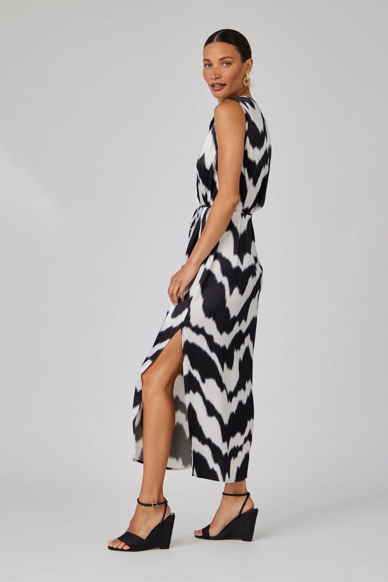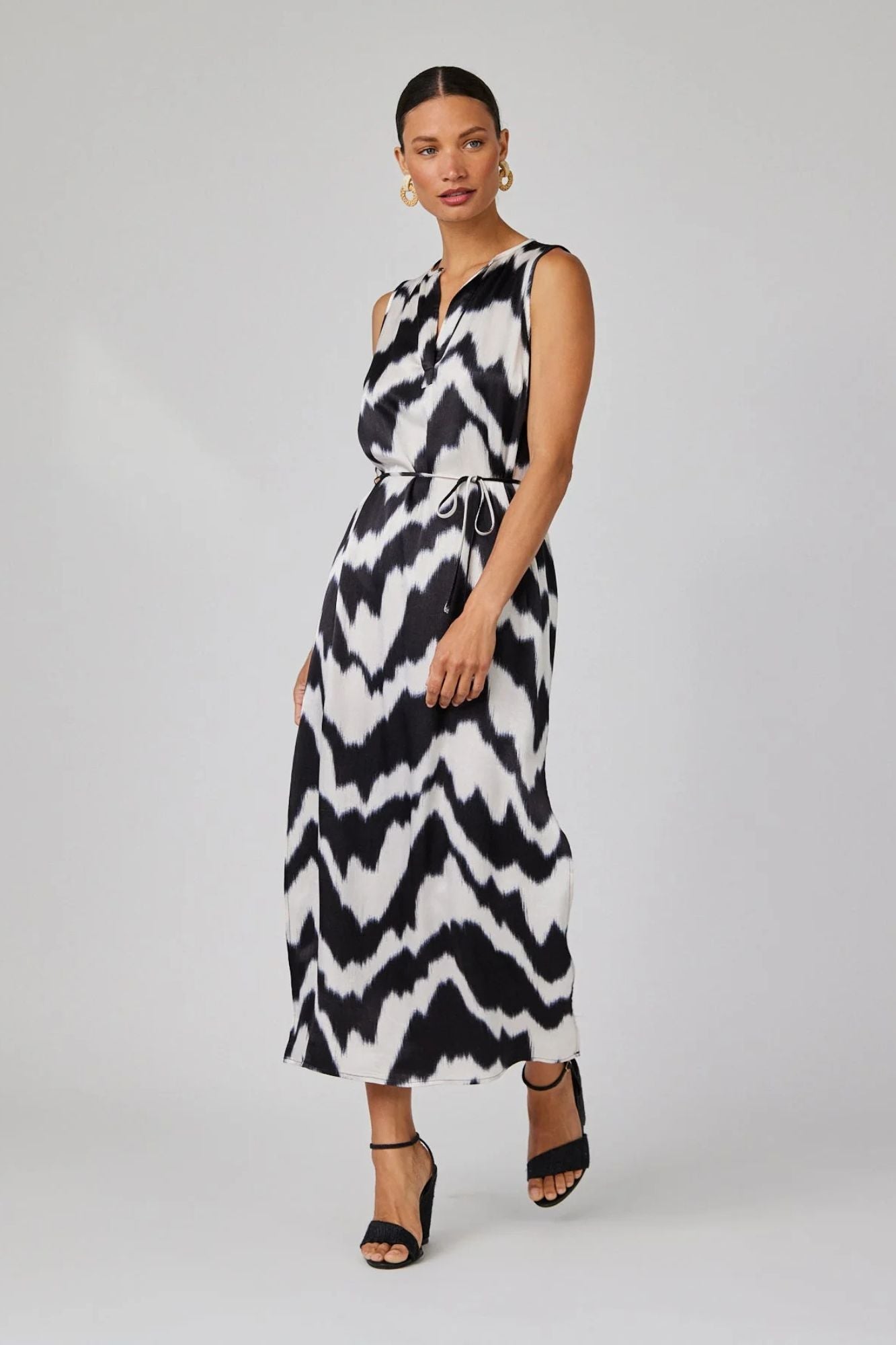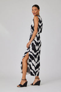 Looking for a stylish and comfortable dress for your next warm weather event? Look no further than our Sleeveless Belted Maxi Dress in Abstract Ikat Print! With its eye-catching design and comfortable fit, this dress will elevate your style and make a statement.