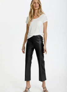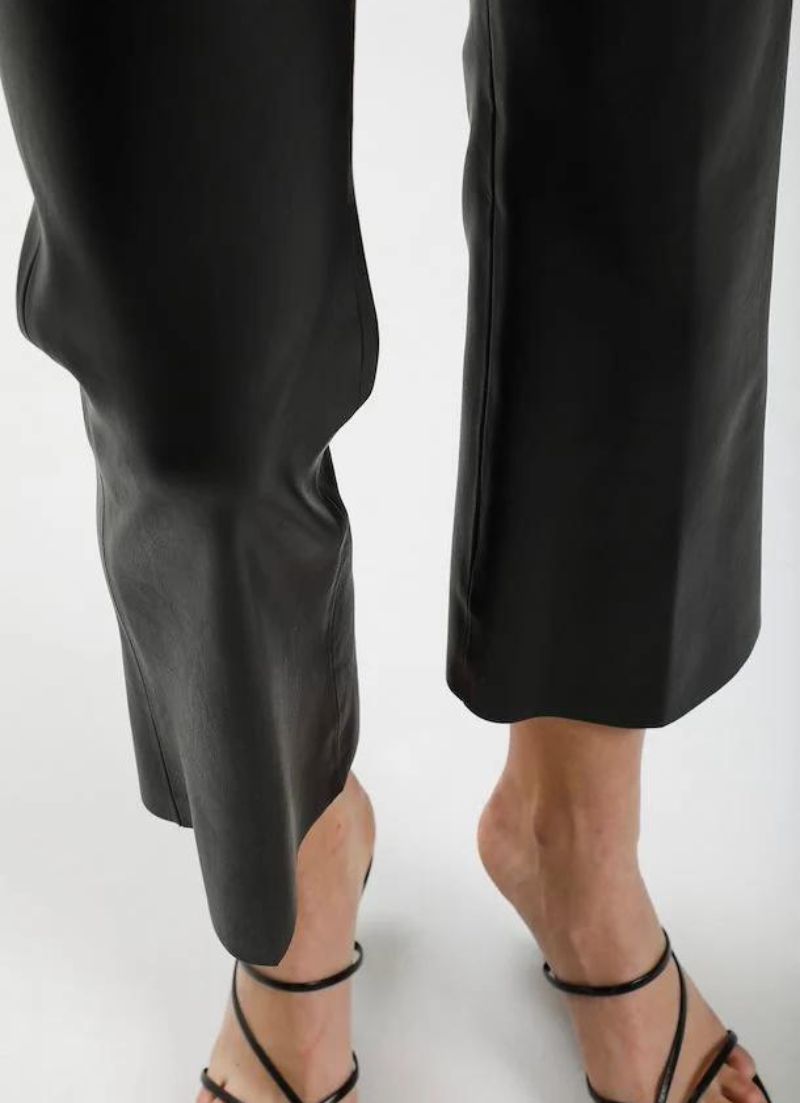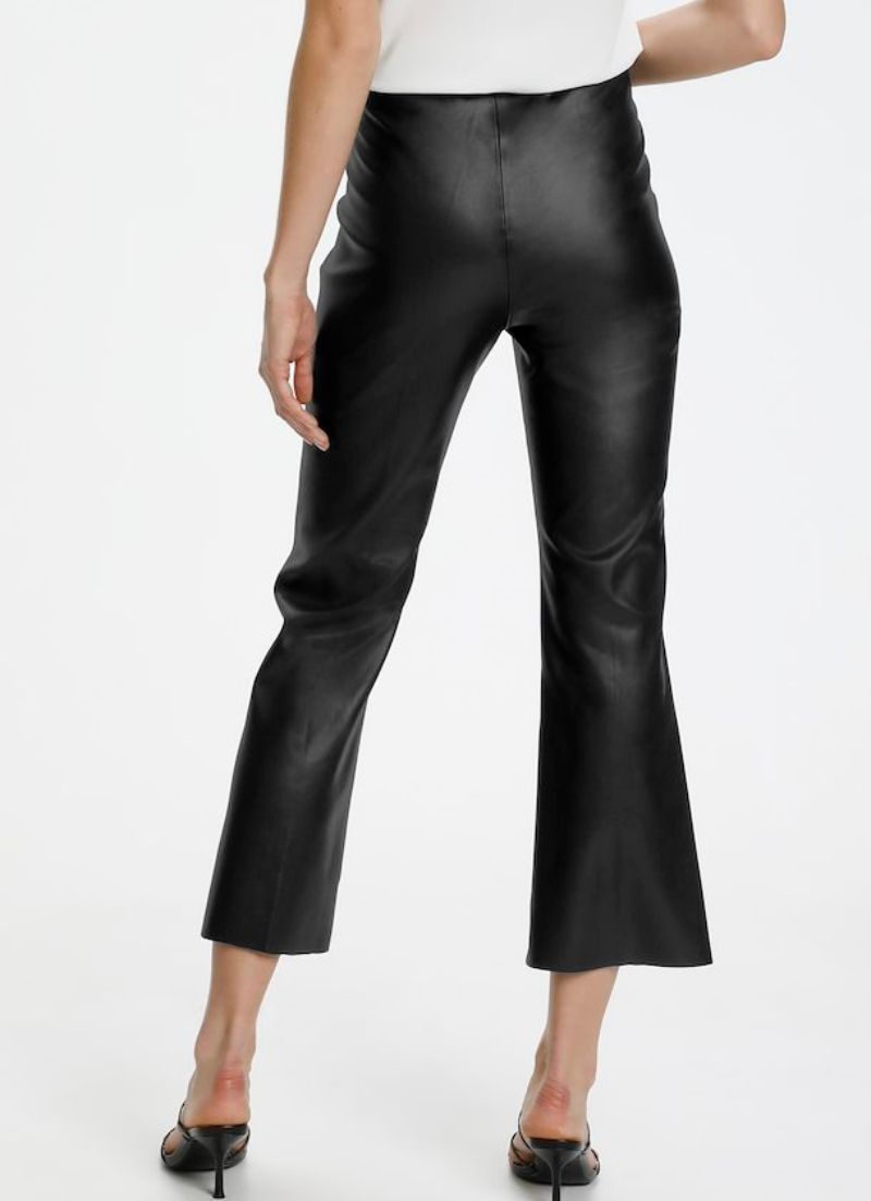 A skinny fit faux leather pant that features a cropped and slightly flared ankle and a mid rise. Pair this with a colour blouse and heeled boots for you next Holiday party!