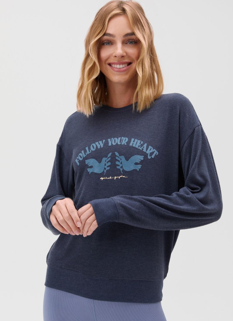 The gorgeous Follow Your Heart Sweater features a roomy and boxy fit, rib trims and flocking details.