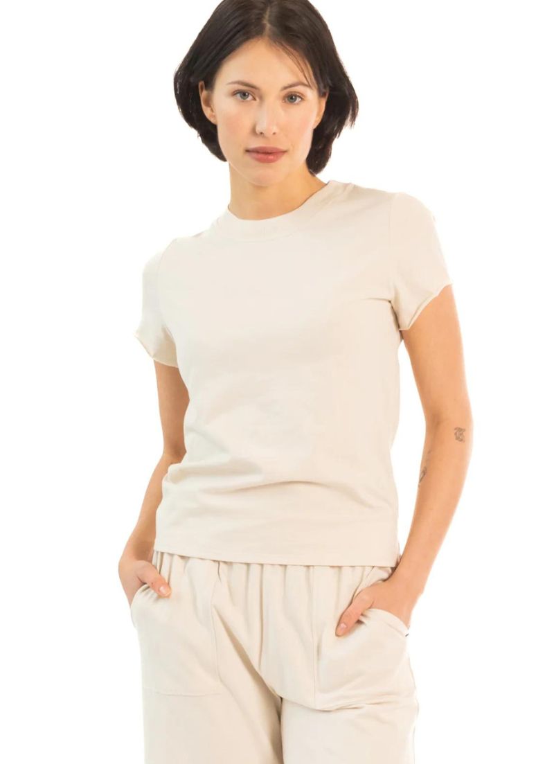 A no effort, crew neck, cap sleeve tee, you'll feel so comfy when you go to this classic piece.