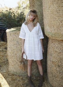 Be the embodiment of effortless chic in the Stevie Dress! This ultra-flattering mini dress is just begging to be taken for a spin on the dance floor. Crafted with ever-dynamic soft and supple lace, its V neckline front and back with tie is going to make you swoon. Plus, the short and wide sleeve boho look is a total show-stopper. Get ready to take center stage!