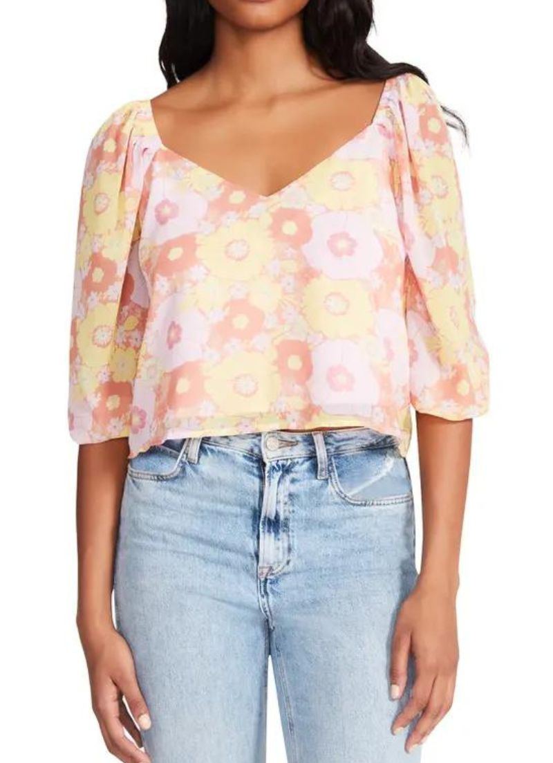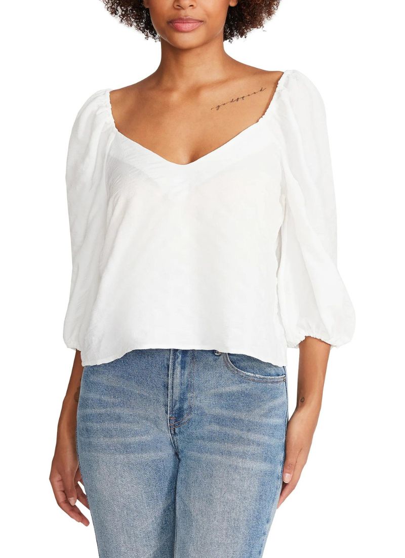 This Stevie Puffy Sleeves Blouse features puffy sleeves and a slight heart neckline. The fabric is breathable and light-weight, providing comfort and style - the perfect addition to any wardrobe.