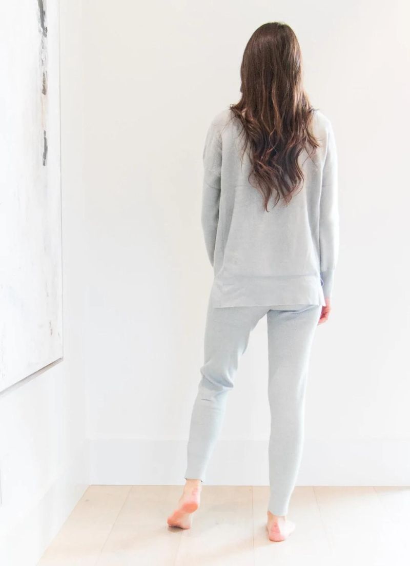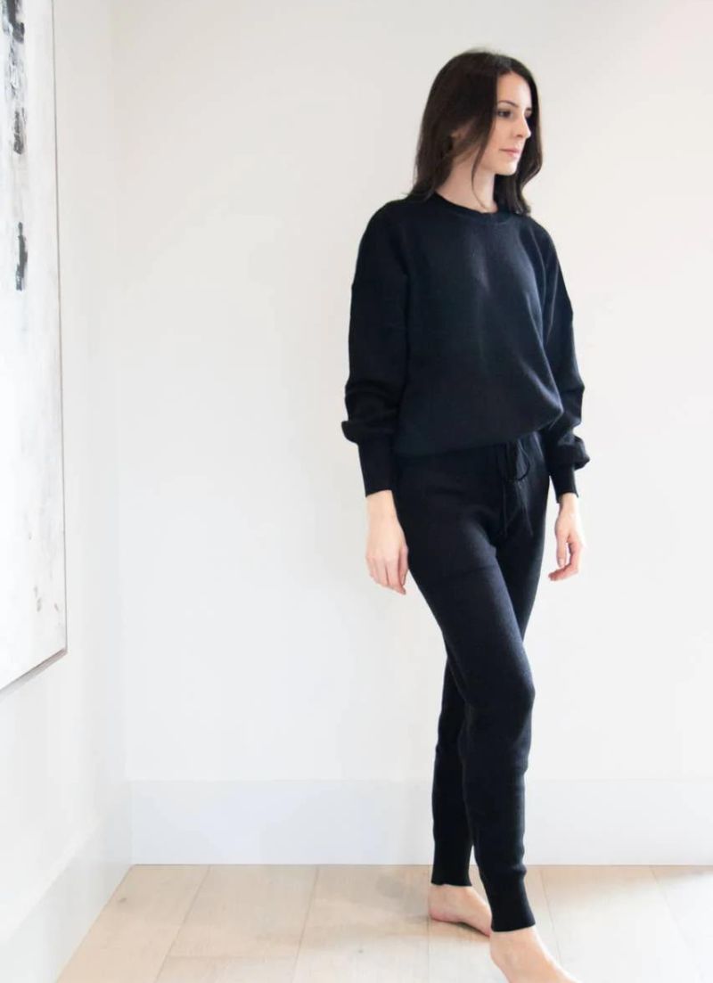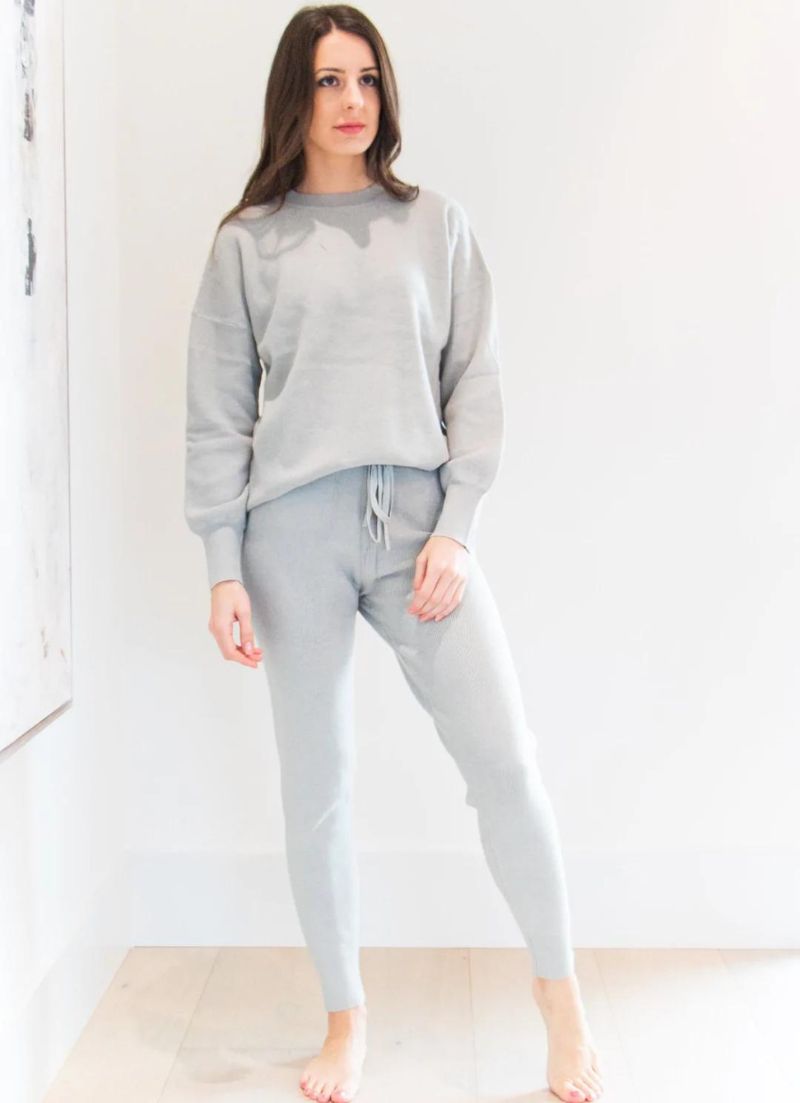 The Stevie pant features cuff ankles and a lace at the waist. It is made from super soft ribbed fabric. Pair it with the matching top.