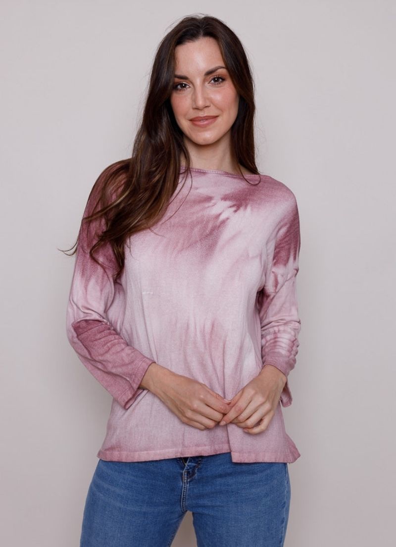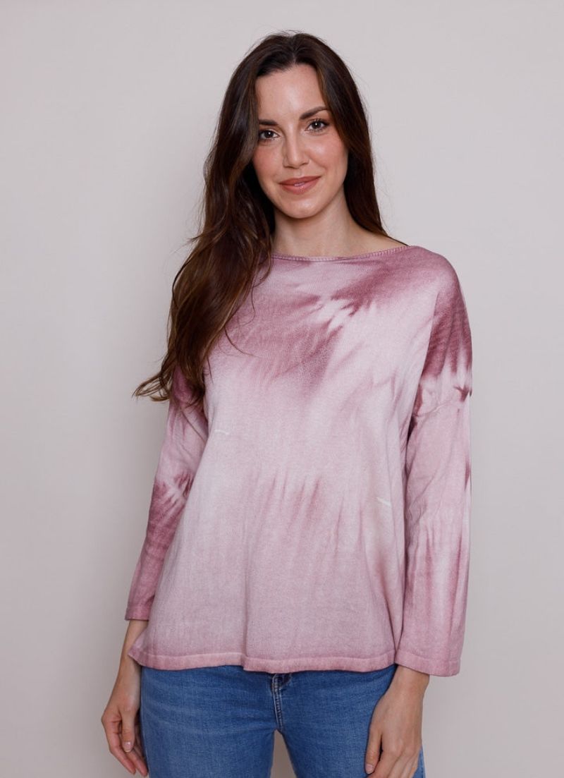 Turn your eye to tie dye this season with Francis. Draped in a playful print, this long sleeved top boasts a wide neck and dropped shoulders.