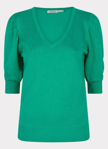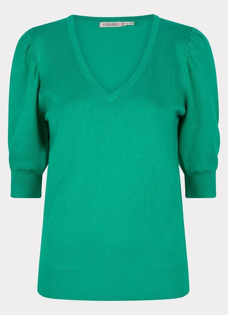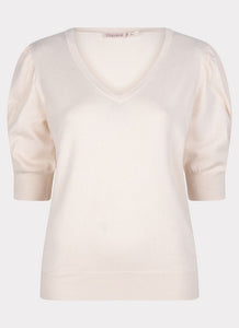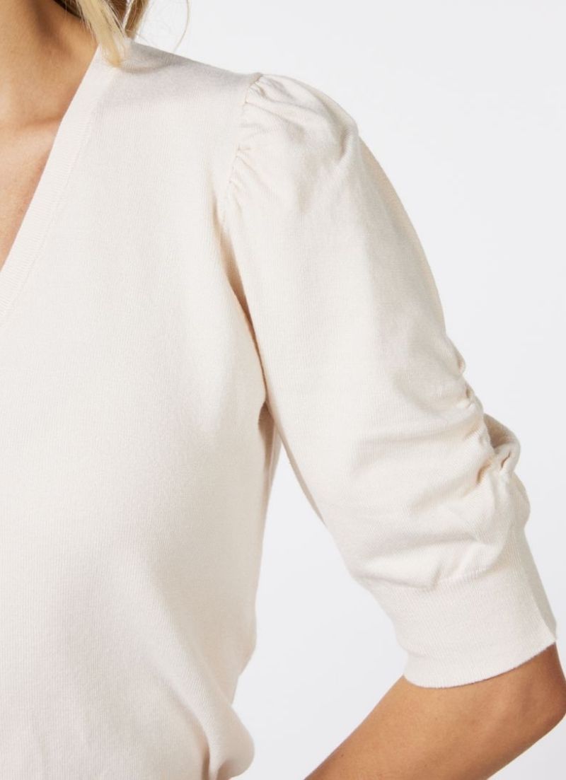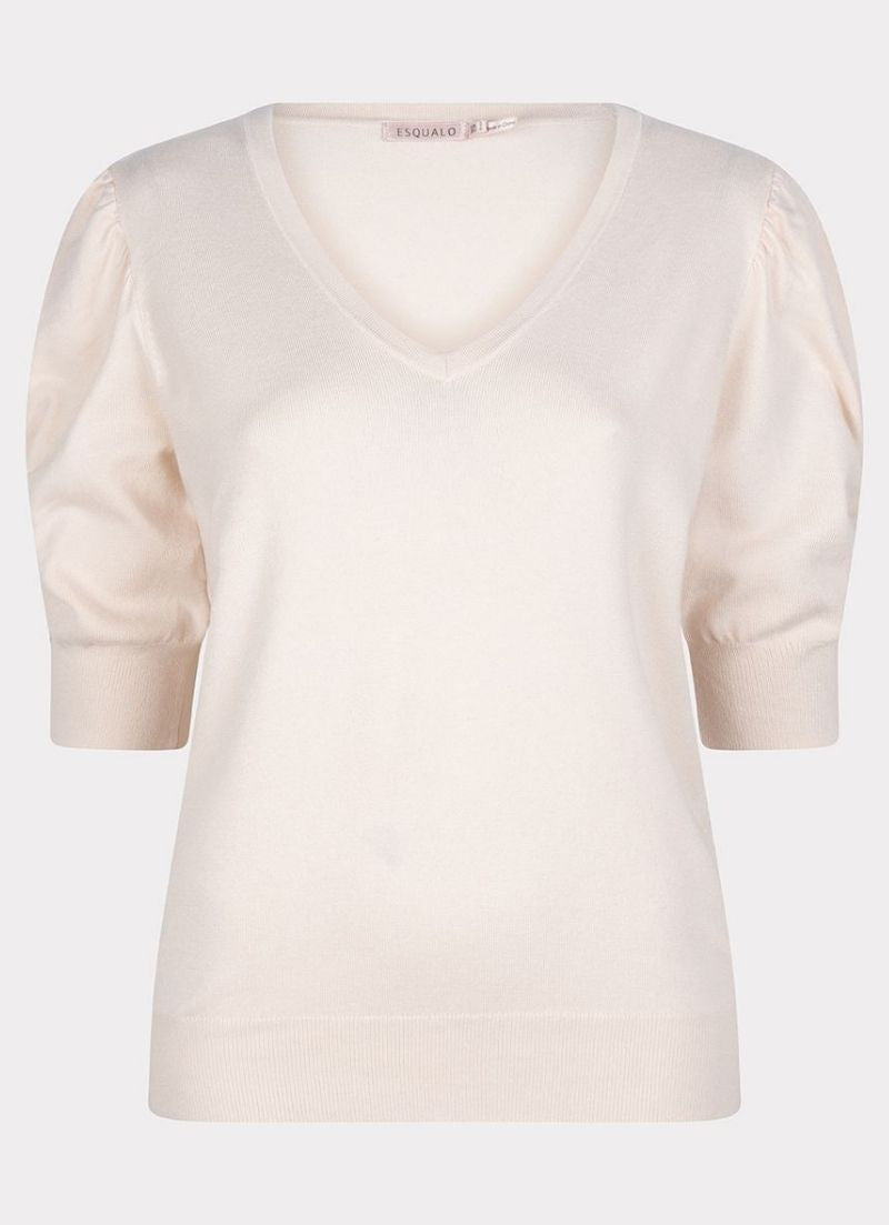 Fancy basic! Fine basic sweater with a v-neckline and pleated short sleeves. The detail on the sleeves makes this basic an absolute must-have.