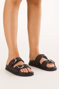Introducing the Talon Sandal, the must-have slide of the season. Designed with a flat footbed and chunky exposed sole for optimal comfort and style. Adjustable buckle fastening and quilt detailing add a touch of sophistication, while the statement chunky buckle in gold hardware makes a bold statement. Perfect for effortless summer style.