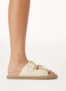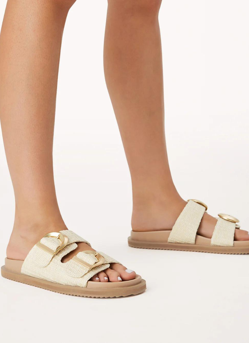 Slide into luxe style with the Tayo Sandal, available exclusively from Billini. This everyday slide boasts a flat footbed and chunky exposed sole for ultimate comfort. The adjustable buckle and statement chunky buckle in gold hardware add modern flair to any off-duty look.