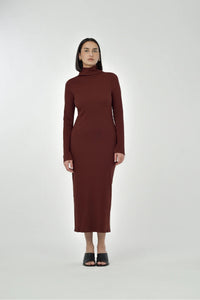 TED DRESS is a long-sleeve maxi dress with a fitted silhouette and mock neck, keeping you covered during the season. Fabricated with a blend of cotton / spandex this dress features a body-hugging, stretchy 2x2 ribbed fabric with a soft feel.
