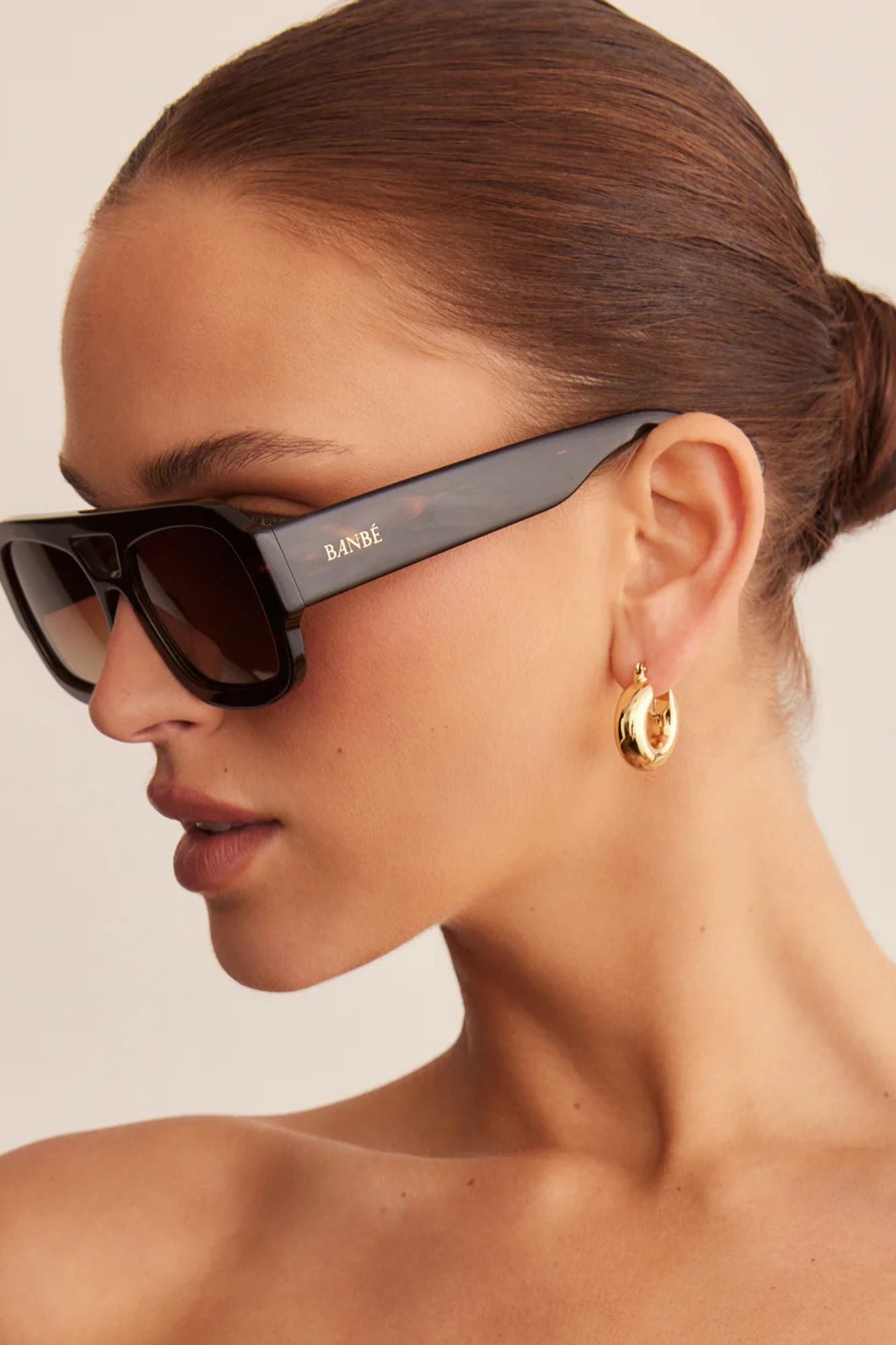 Introducing The Suki by Banbé, modern aviator sunglasses that elevate your look. With a gold embossed logo on the outer left arm and style details in gold foil on the inner right arm, these square shades are the epitome of contemporary. Complete with scratch-resistant polarised lenses and 100% UV protection, all housed in an acetate frame. Includes a branded vegan case and cleaning cloth.