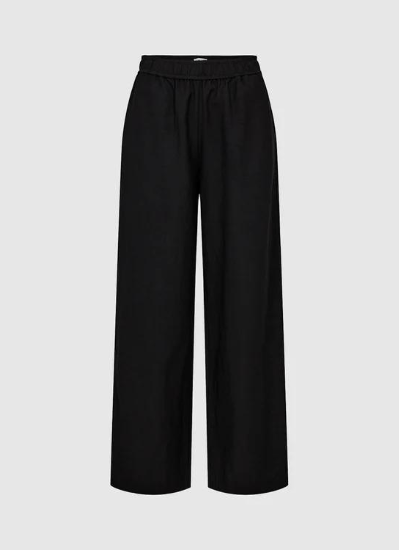 Theorilla is a pair of classic pants crafted from linenand viscose for a soft and nice quality. The pants have a relaxed fit and feature two side pockets and an elasticwaistband. The model is 180 cm tall and wears a size 36.