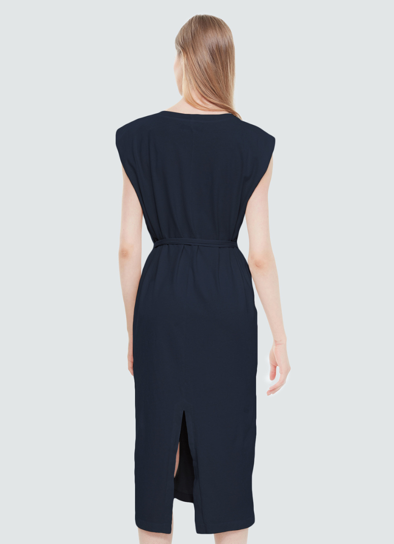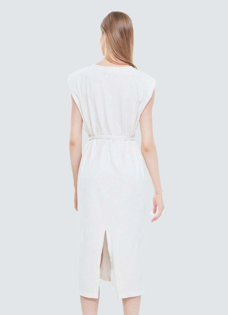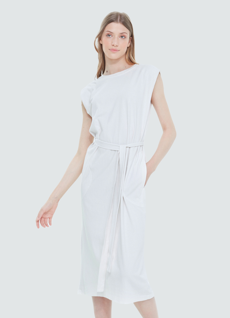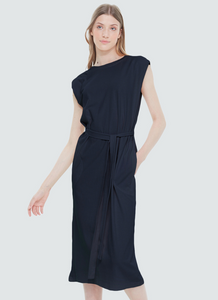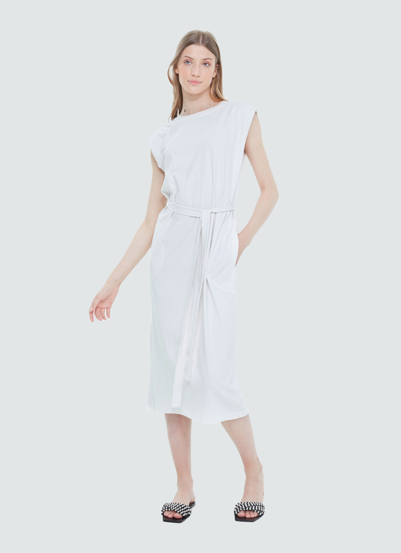 This Tie Waist Knit Dress offers lightweight comfort without compromising style. Crafted from a soft yet sturdy fabric, it features an adjustable waist tie, sleeveless design, and two pockets for added convenience. Stay comfortable and stylish all day long.