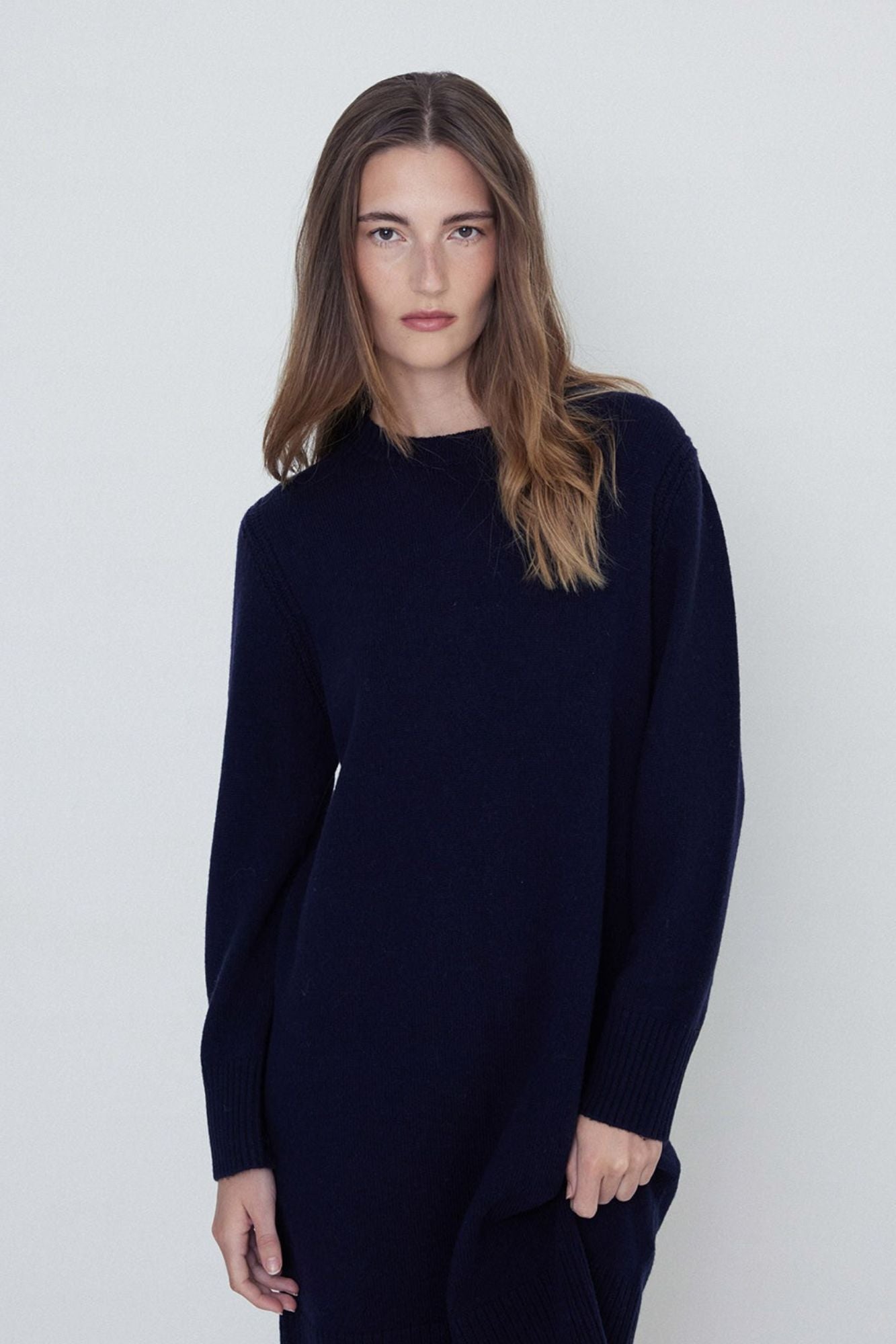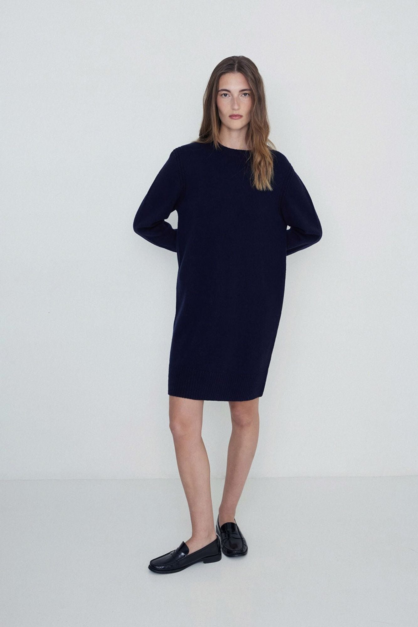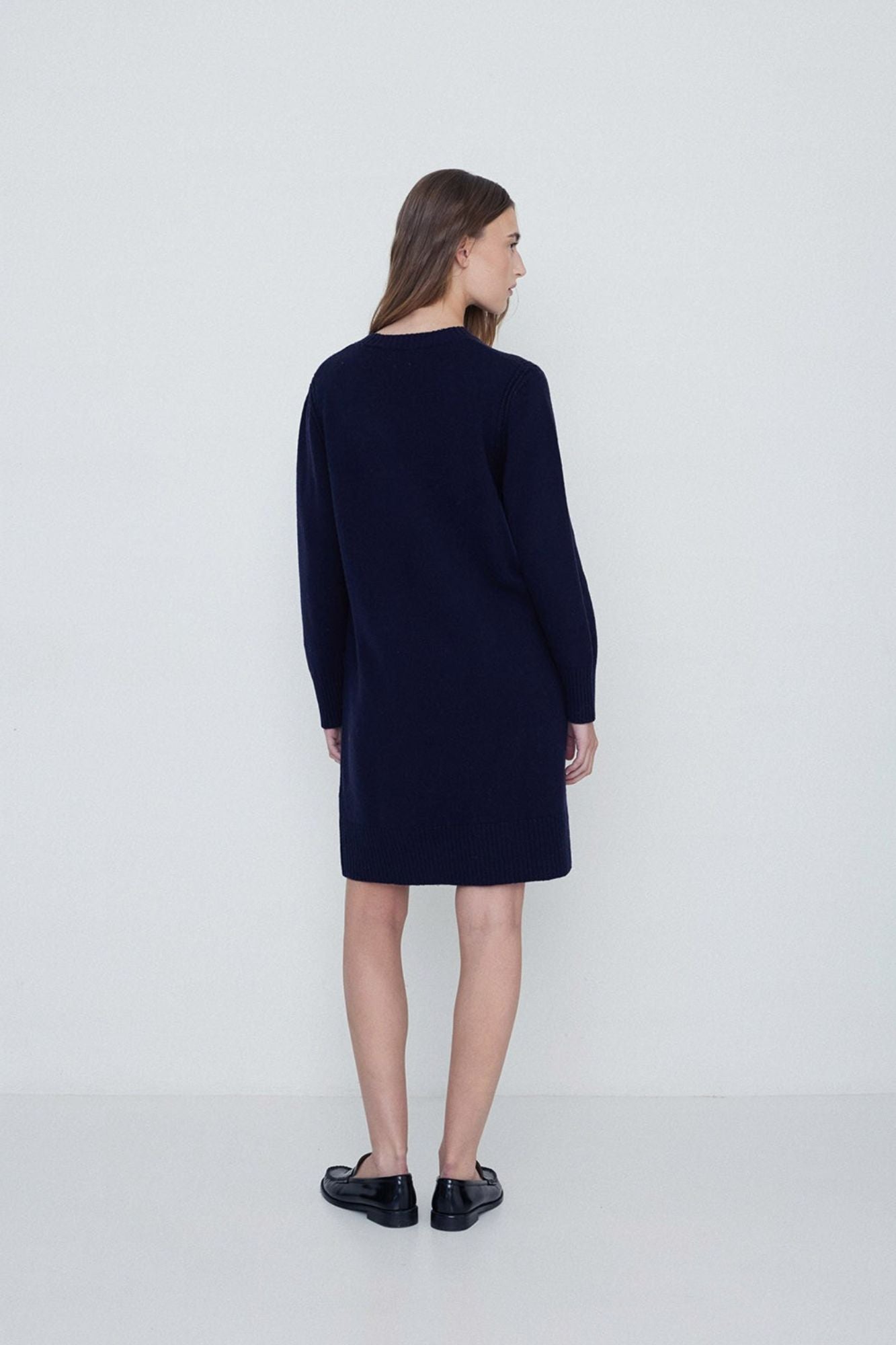 Introducing the Treena Sweater Dress - a short knit dress with a round neckline, long sleeves, and ribbed accents. Perfect for staying cozy and stylish in colder weather. Step out in this playful piece and make a statement without sacrificing comfort.