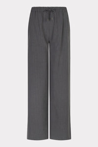 These wide-leg, full-length trousers feature a comfortable drawstring waist for an adjustable fit. Their classic pinstripe design adds a touch of sophistication, making them an ideal match with the Jacket Bomber Pinstripe. Perfect for creating a coordinated, stylish look that balances comfort and elegance.