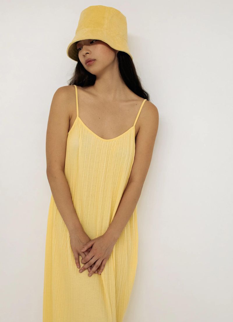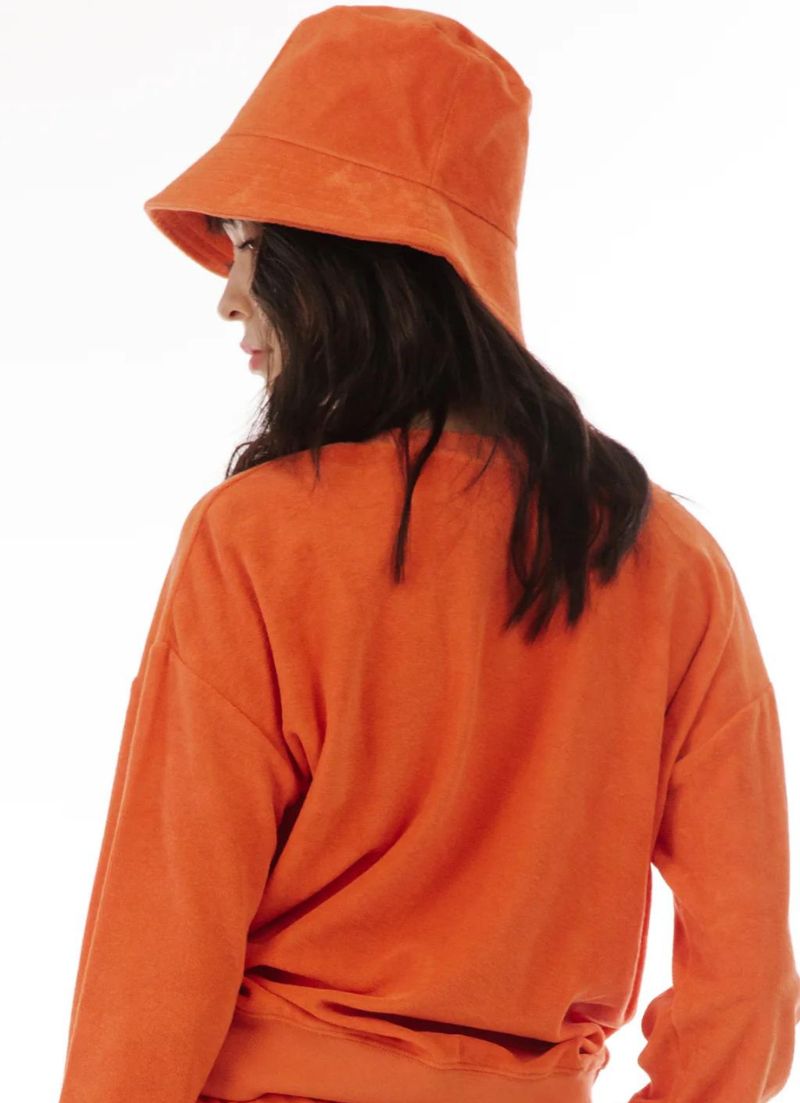 This terry towel bucket hat is just what you need to complete your sun ready look, pair it with your daily denim or hit the beach with this staple statement accessory.