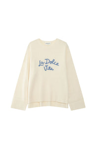 The VIGGO long-sleeve sweater brings effortless style to your everyday rotation. Featuring an embroidered message on the front, this oversized piece offers a relaxed silhouette that pairs seamlessly with your existing wardrobe. The wide cut and round neckline create a comfortable, laid-back aesthetic, while subtle side slit details add contemporary edge. Perfect for casual layering or standalone wear.