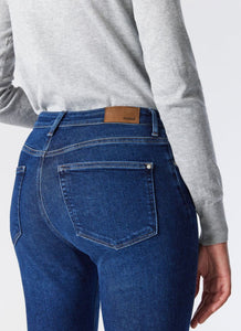 Mavi's newest cropped straight leg jean has a comfortable high rise that sits above the waist and an equally relaxed leg that tapers slightly at the ankle.