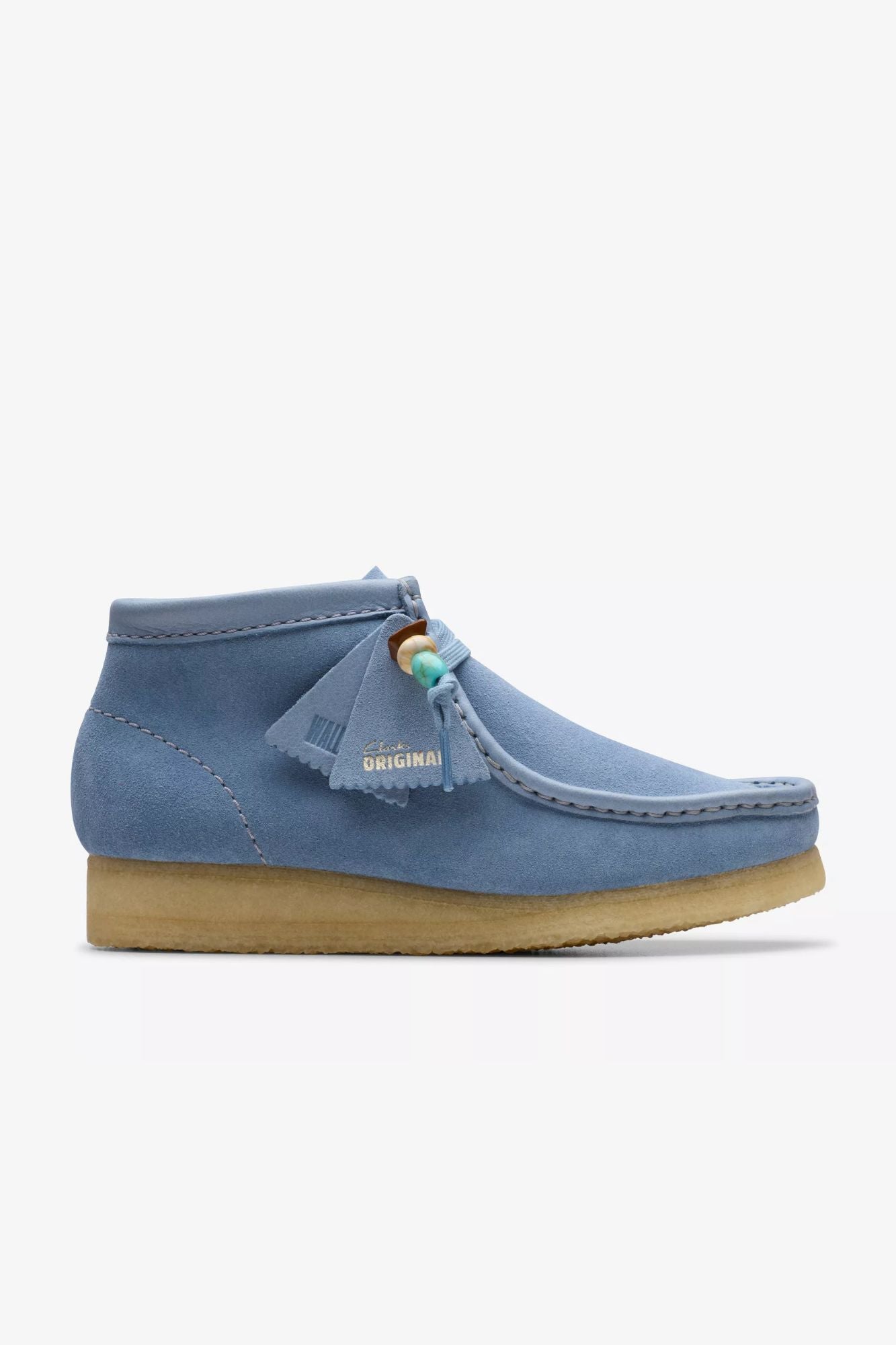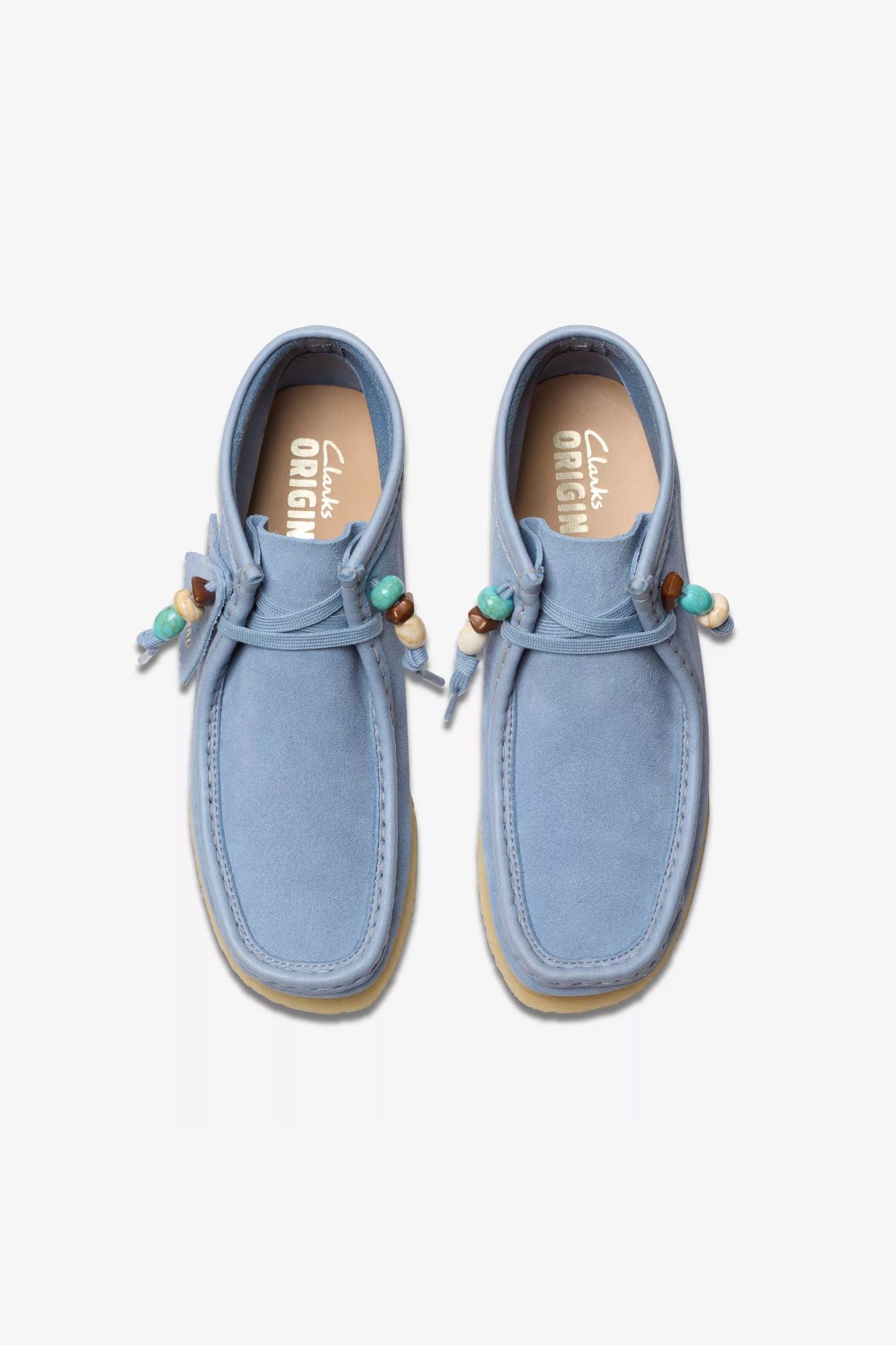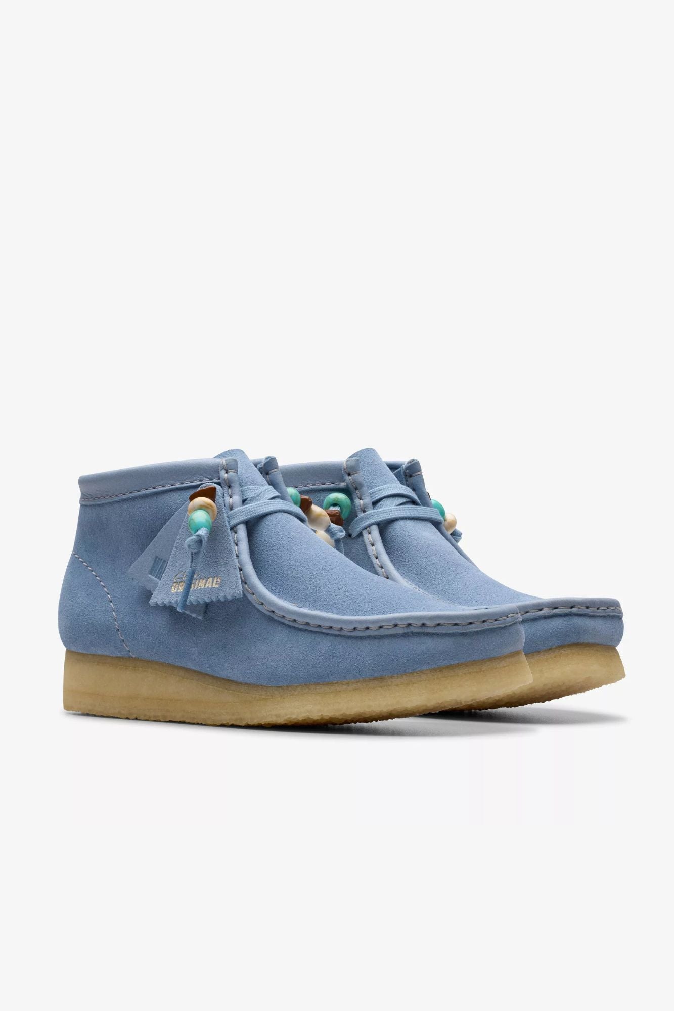 Step out in style with the iconic Wallabee™ Boot. Featuring clean and timeless Powder Blue suede from British tannery Charles F Stead, this moccasin profile is elevated with a trio of colored beads on each lace. Soft and stylish, this boot is a must-have for any wardrobe.