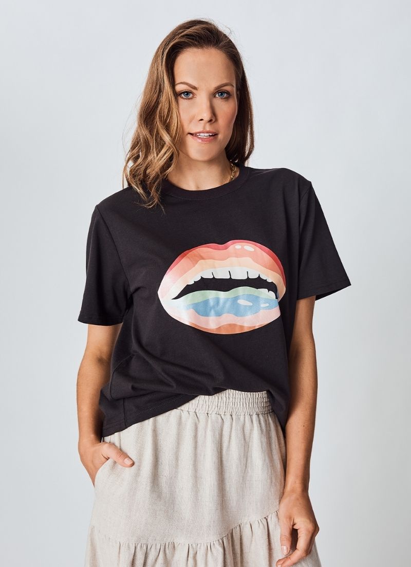 The Vintage Tee in a classic vintage shape with retro inspired rainbow lip print on the front.