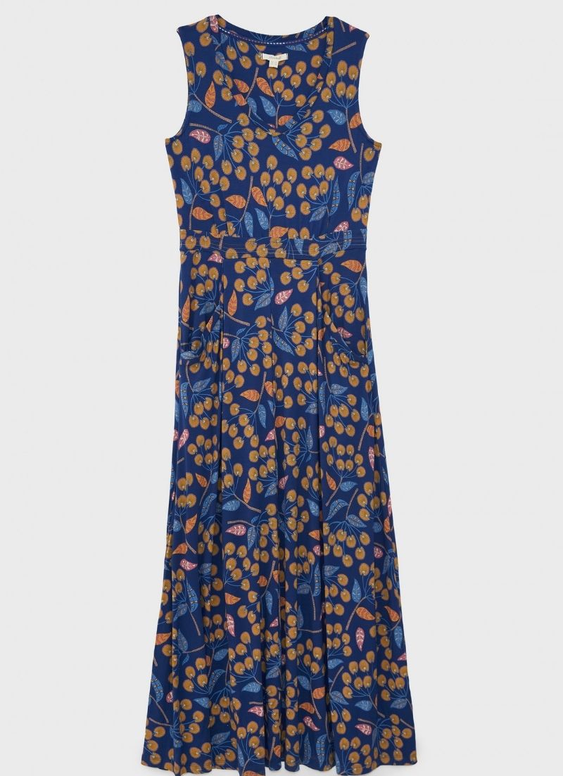 Jersey maxi dress. Soft viscose with a touch of stretch. Conversation-starting botanical print. 70s retro vibes. Fits like a dream. Get set for compliments. Features pockets and roomy pleats. The model wears a size 10 and is 5' 10"/178cm
