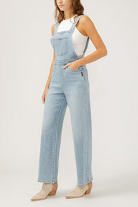 Introduce a relaxed and on-trend vibe to your wardrobe with our wide leg overall jeans. The medium-light indigo wash, cross-back straps, and classic bib pocket add variety and style to your everyday look. And with a comfortable mid rise and stretch denim, you'll feel and look amazing all day long!