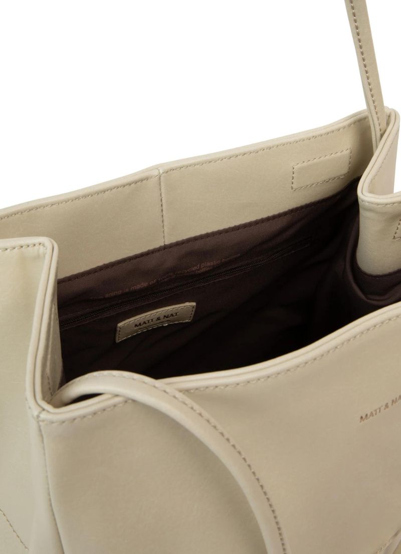Tote with magnetic snap closures.