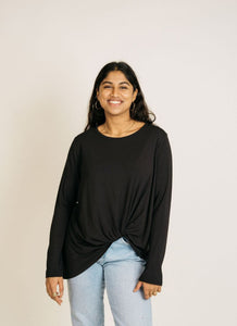 Anything but basic, the Winter Knotty is one of Jackson Rowe's most unique and flattering tees. The knot sits at the waist and does the styling work for you. The widened neckline, long sleeves and relaxed fit make this piece a go to for all shapes and sizes.