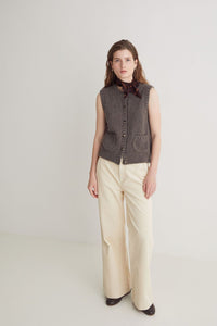 The Woods Vest combines sustainable style with cozy comfort, crafted from soft merino wool blended with recycled fibers. Its boucle texture adds tactile depth, while the regular fit and sleeveless design ensure easy layering. Featuring a round neckline, faux-tortoiseshell buttons, and two front patch pockets, this vest is both functional and chic—perfect for elevating your everyday look sustainably.