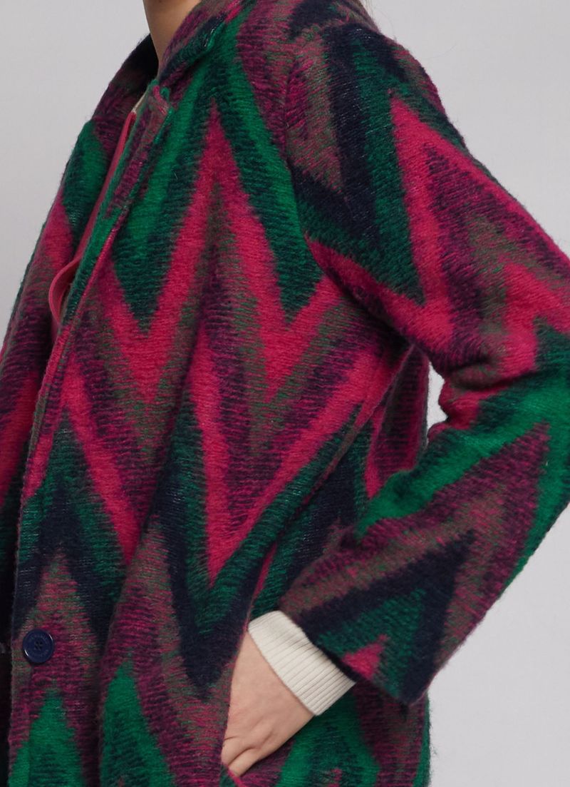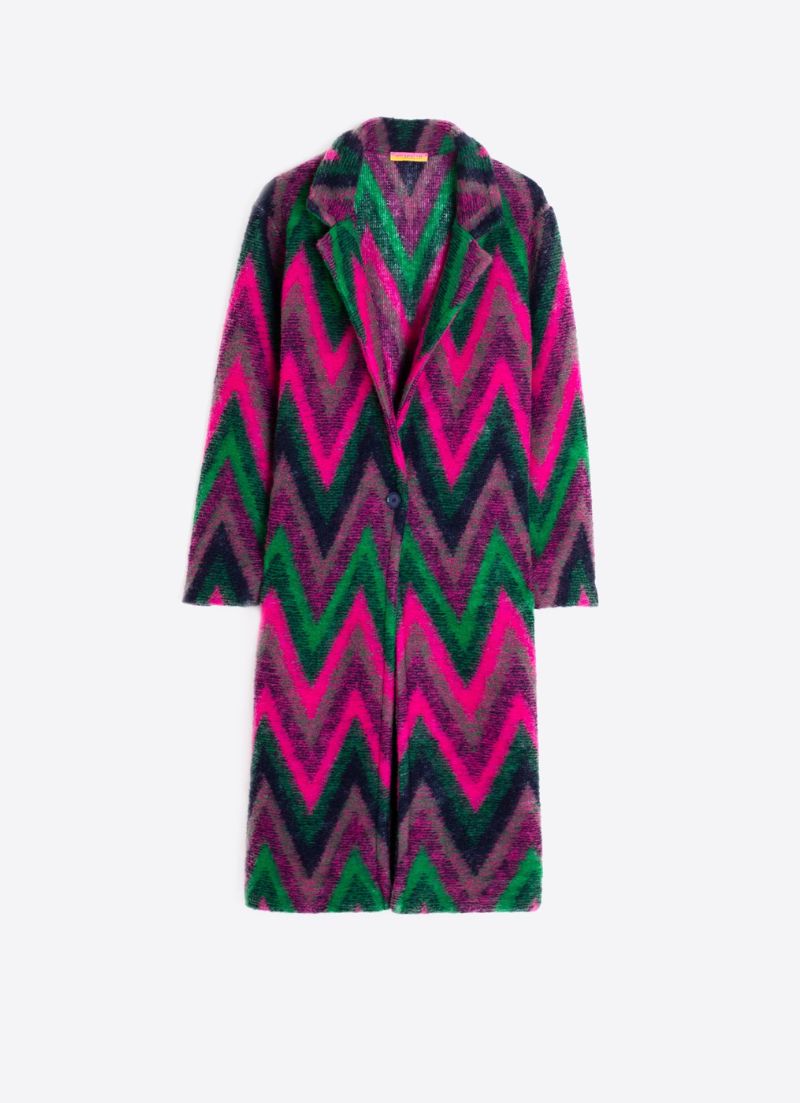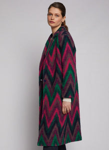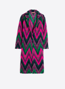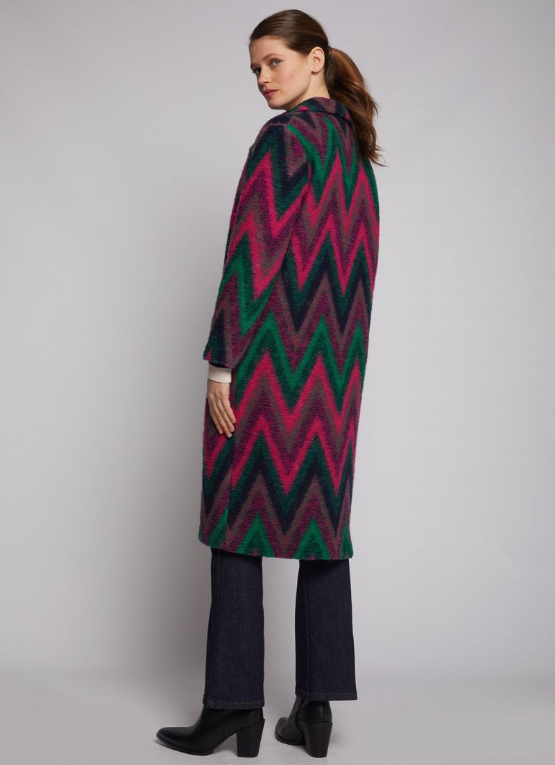 A beautiful and unique zig zag design coat, made with side pockets and a single button closure.