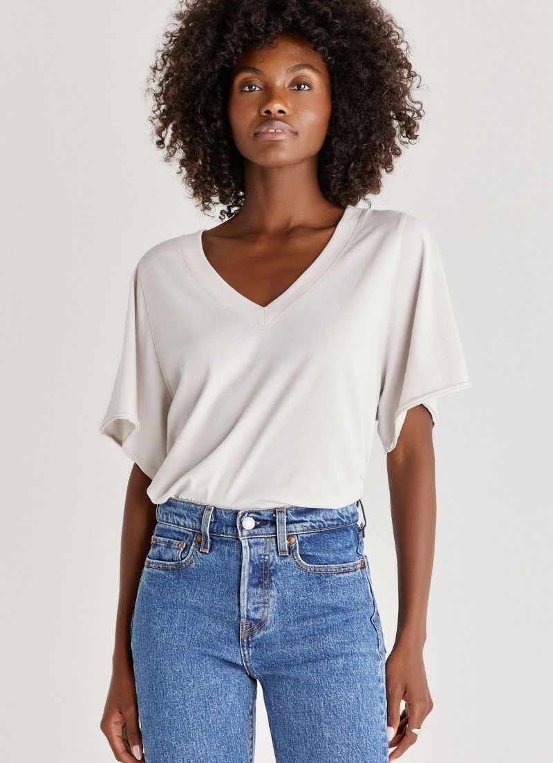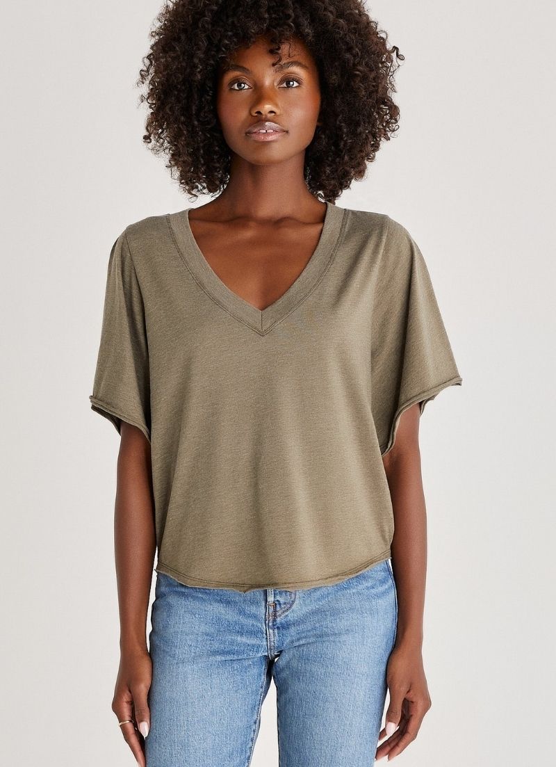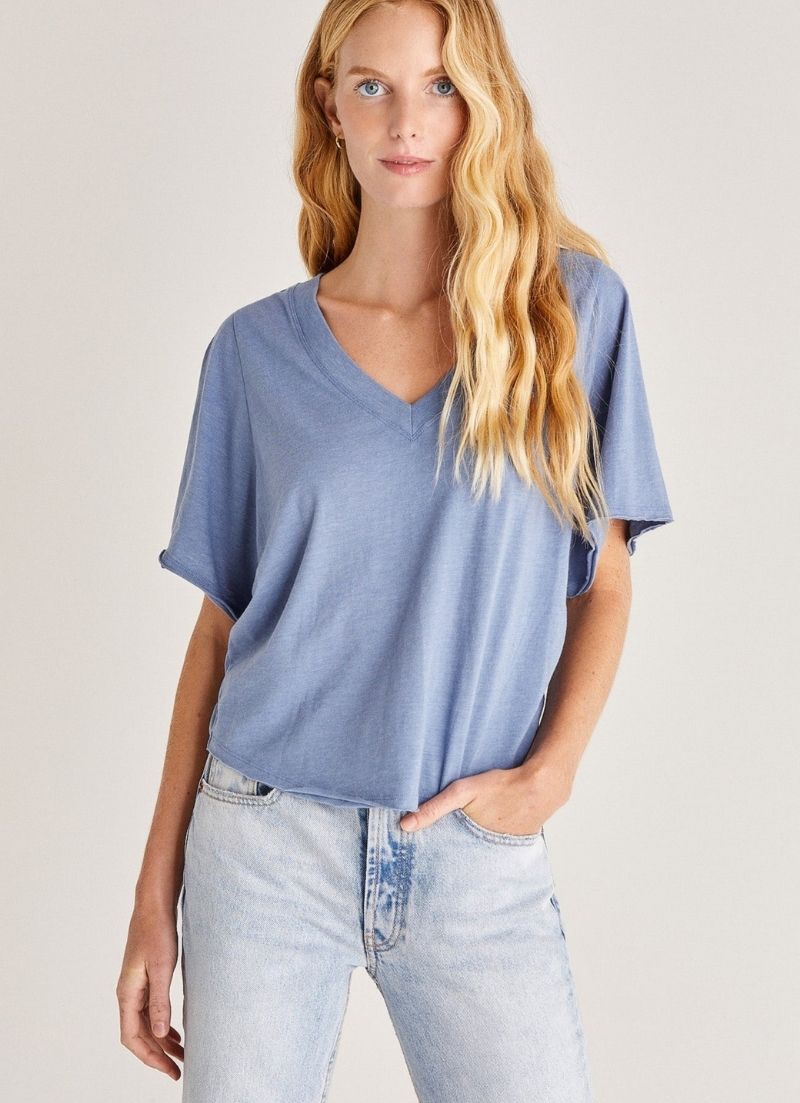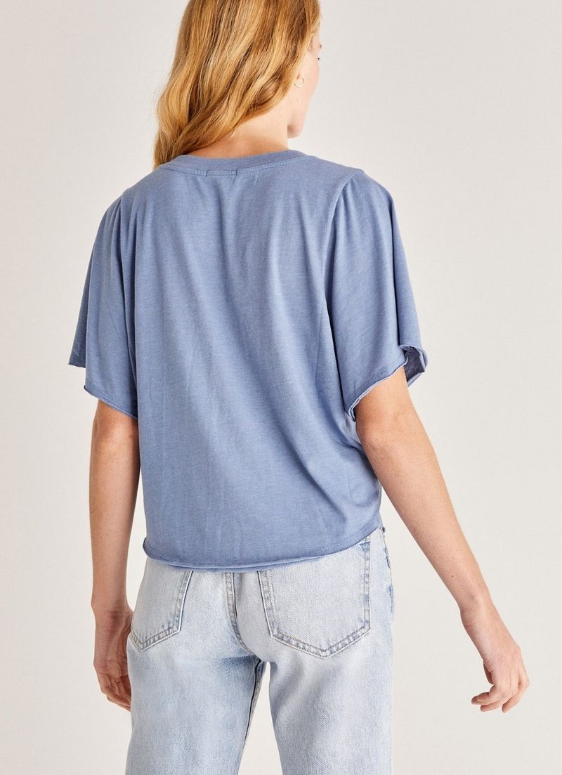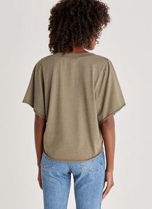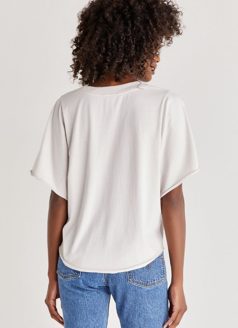 The Odelle Jersey Tee is crafted with a wide sleeve and raw edge hem.