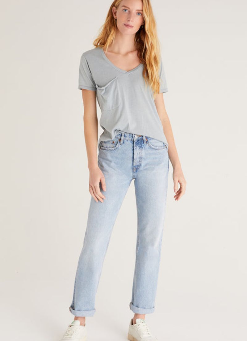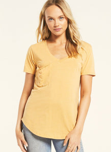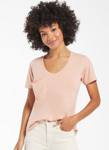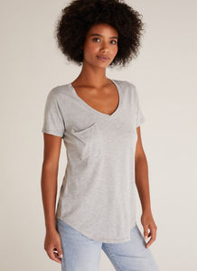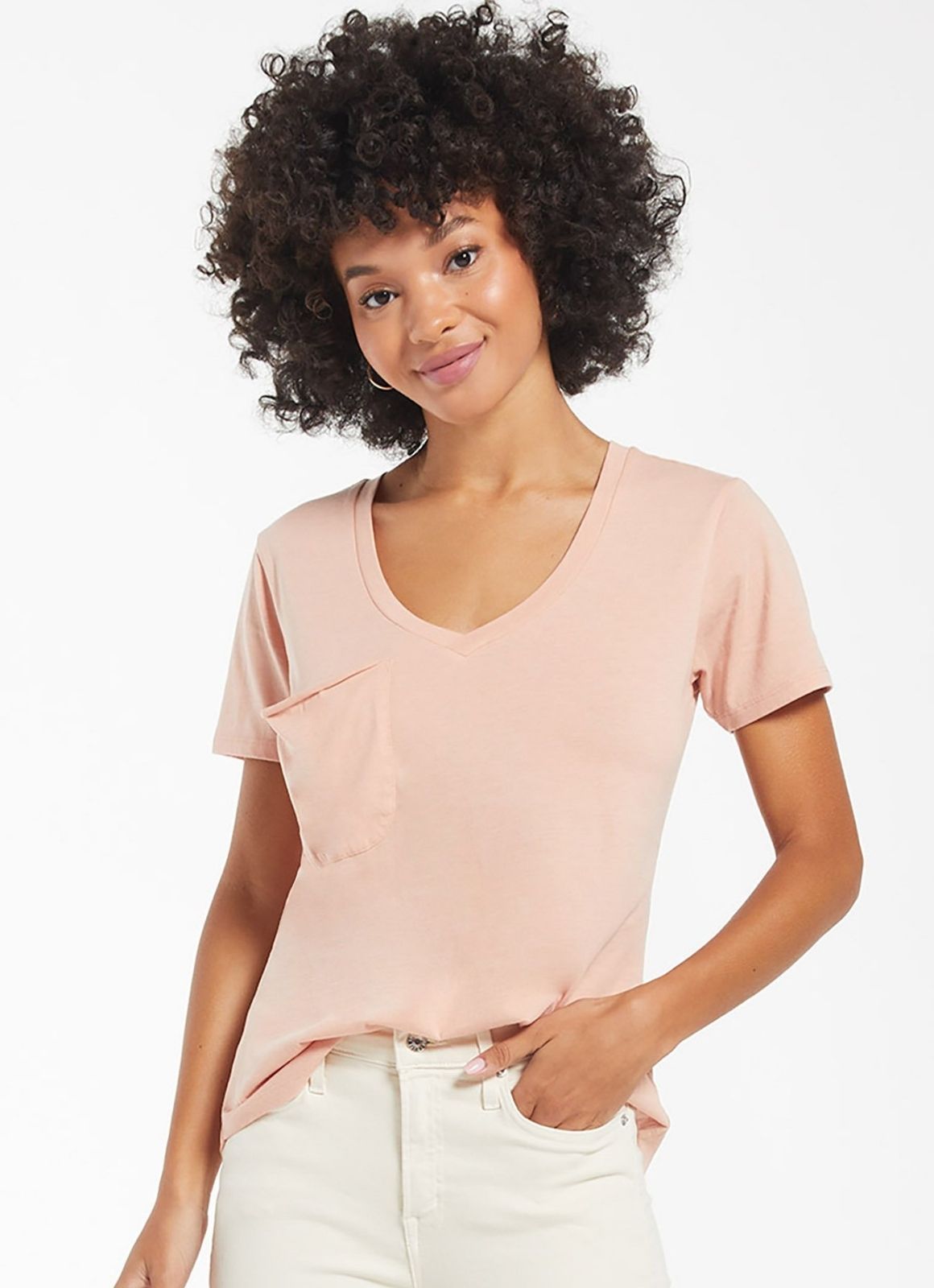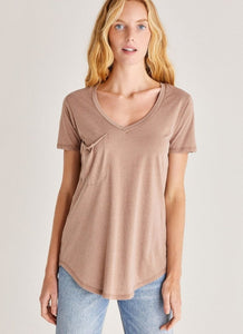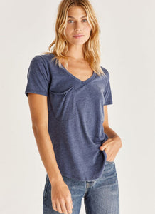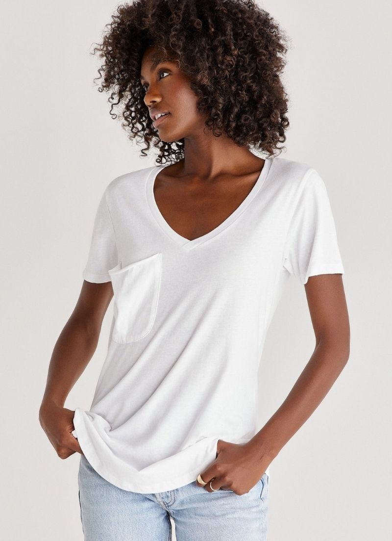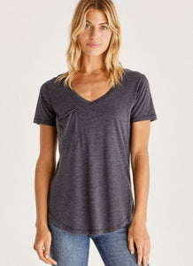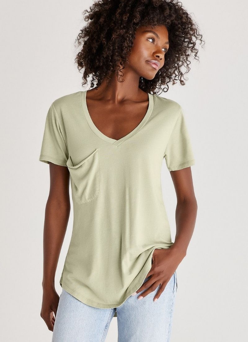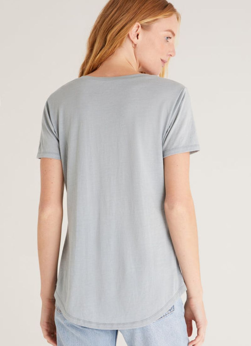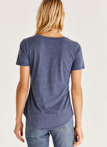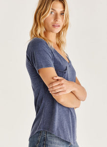 Favorite tee is an understatement. Made from our signature burnout jersey, this tee is complete with a curved v-neckline and a slouchy raw edge pocket. Because of its soft feel and chic fit, you will want to stock up in every color.